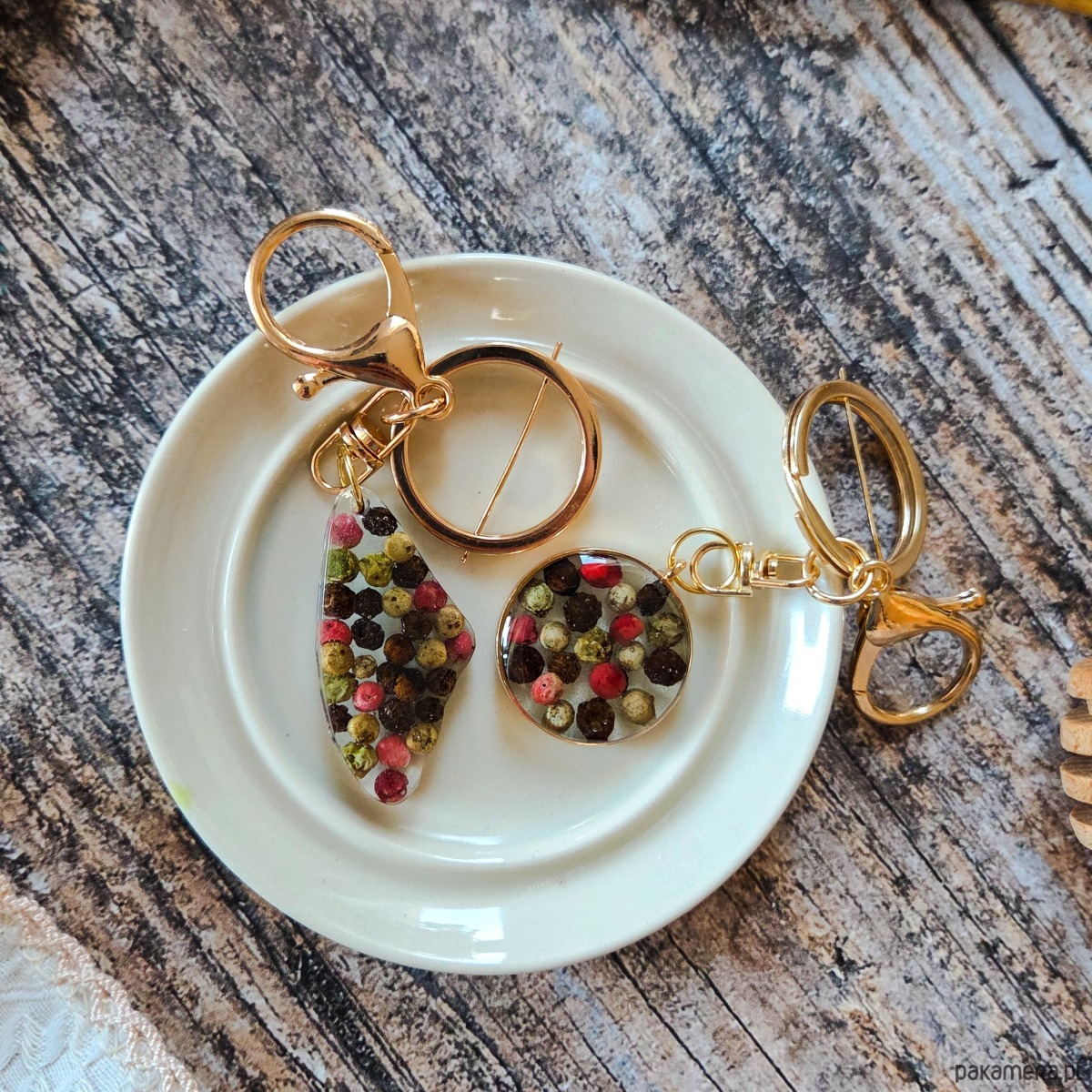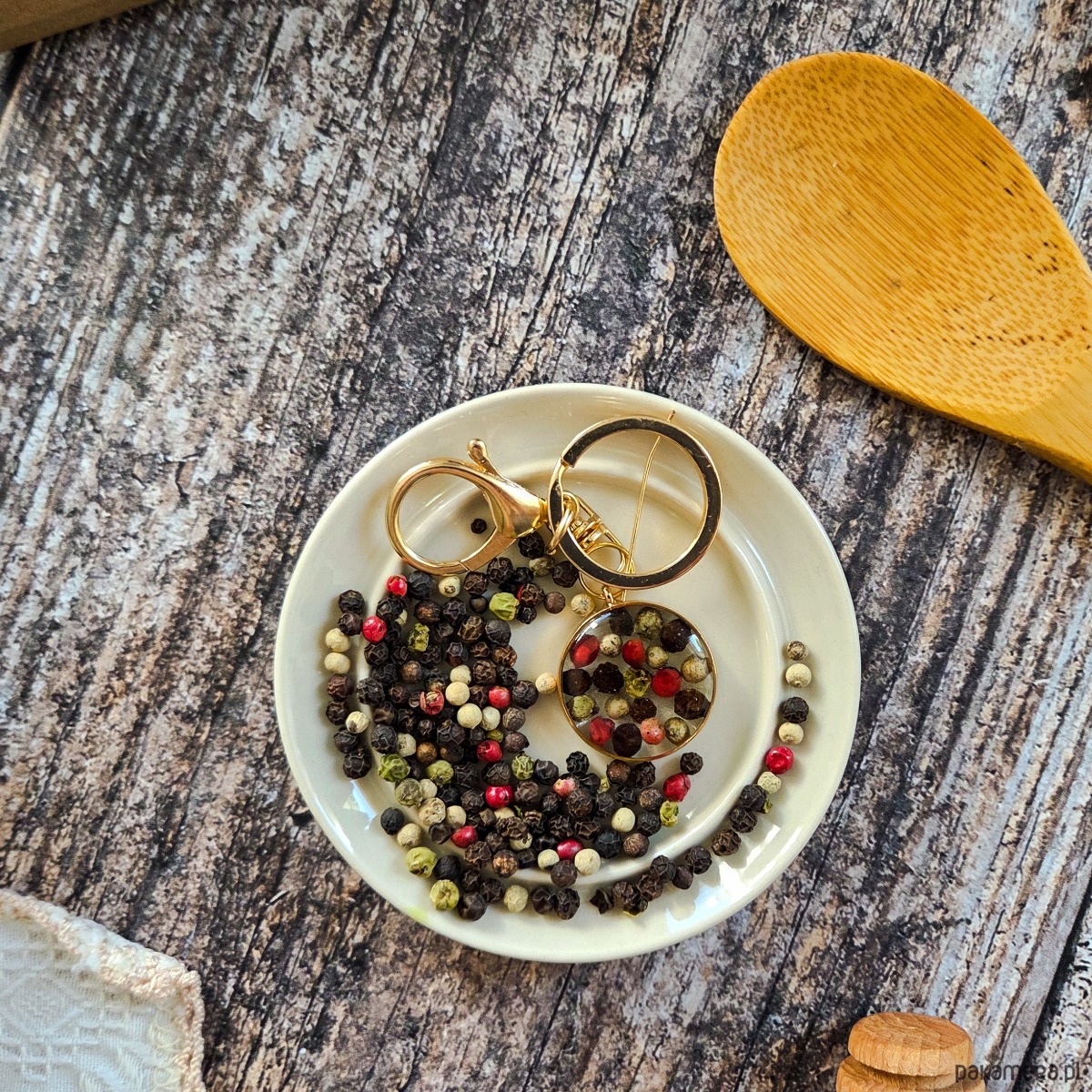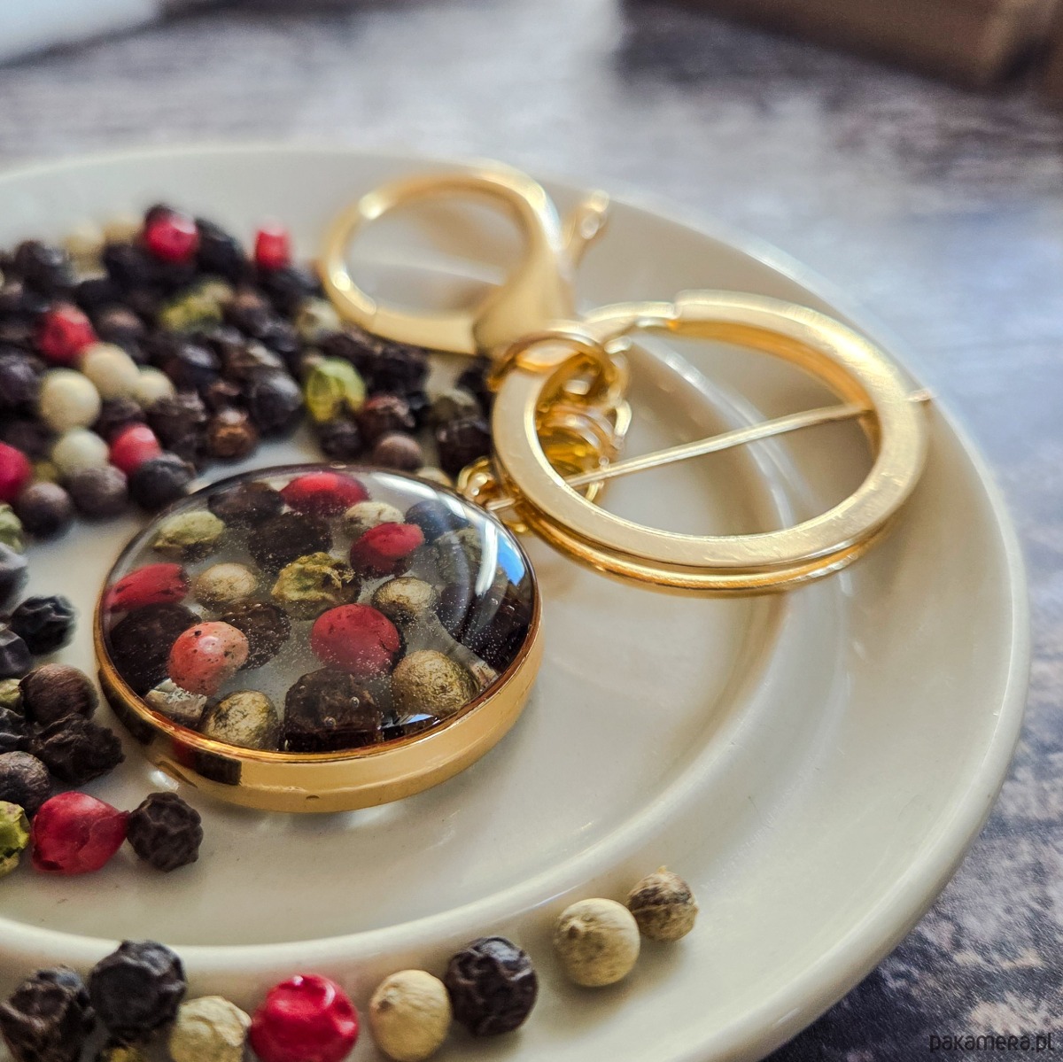 Breloczek z pieprzem zatopionym w żywicy epoksydowej.