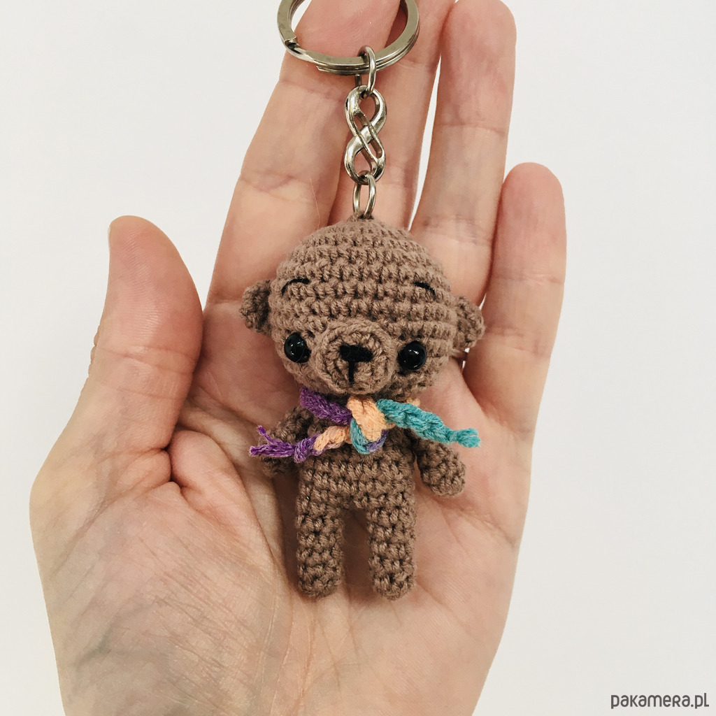 Wysokość misia ok. 6 cm, długość z zawieszką ok. 11 cm.