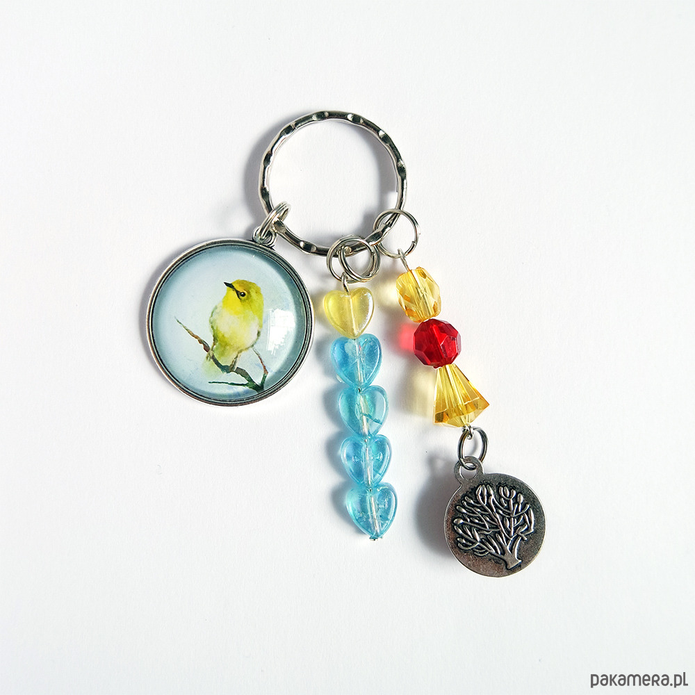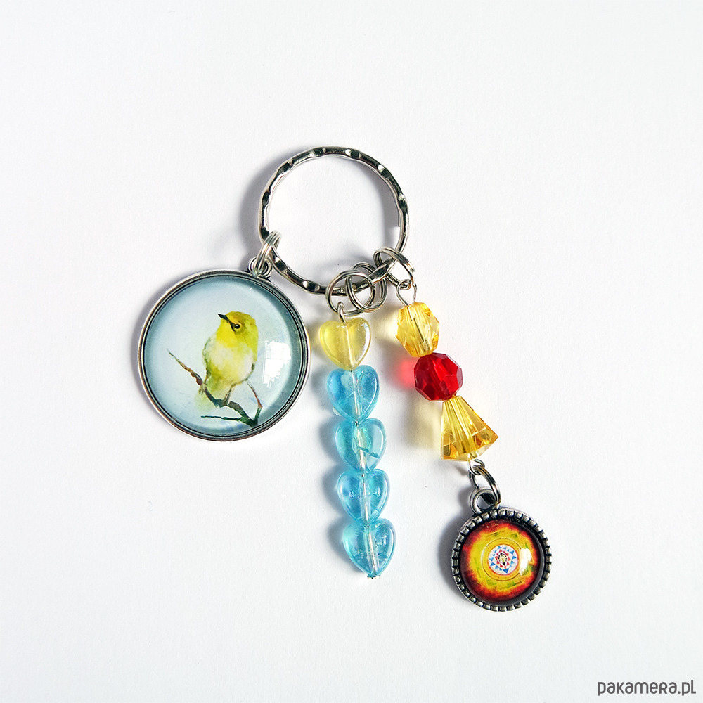 Niezwykły brelok z naszymi autorskimi grafikami oraz kompozycją z koralików.