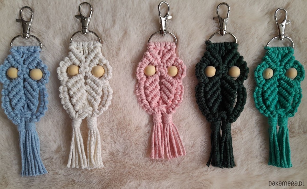 Breloczki sówki, do torebki, plecaka, kluczy, makrama. Handmade. 3+1 gratis