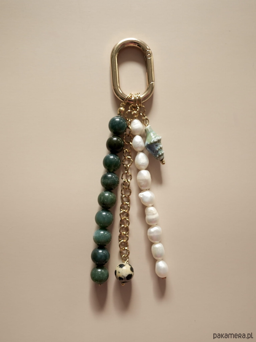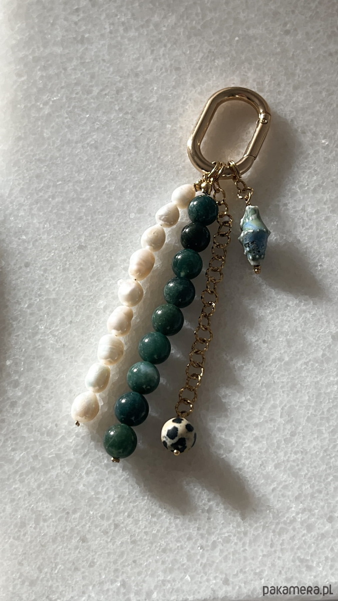 Brelok Blair #3 zielone agaty, perły naturalne, jaspis dalamtyński