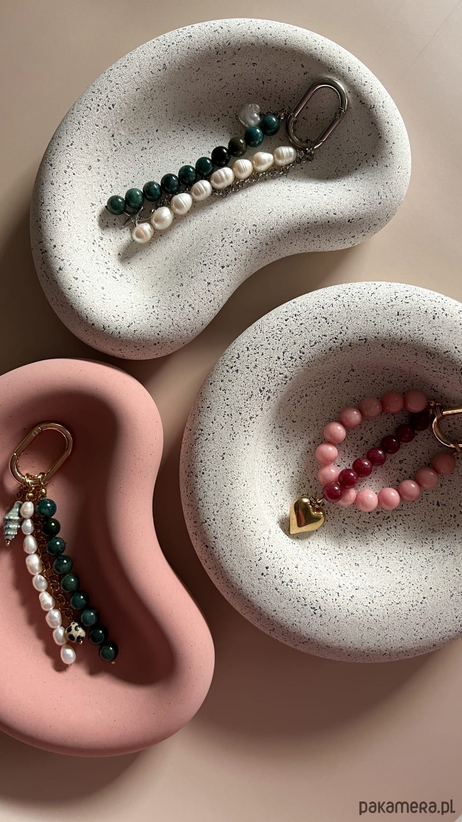 Ręcznie robiony brelok Blair #3 z naturalnymi hodowlanymi perłami i kamieniami, który zachwyca subtelnym połyskiem i elegancją. Idealny jako ozdoba torebki, etui lub kluczy - dodaje im wyjątkowego, biżuteryjnego charakteru. Każdy brelok tworzę własnoręcznie, dzięki czemu masz pewność, że trzymasz w dłoni coś absolutnie unikatowego.