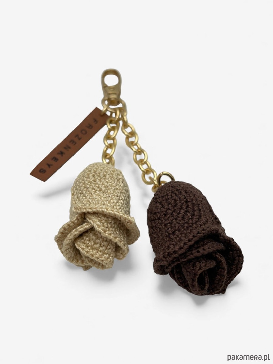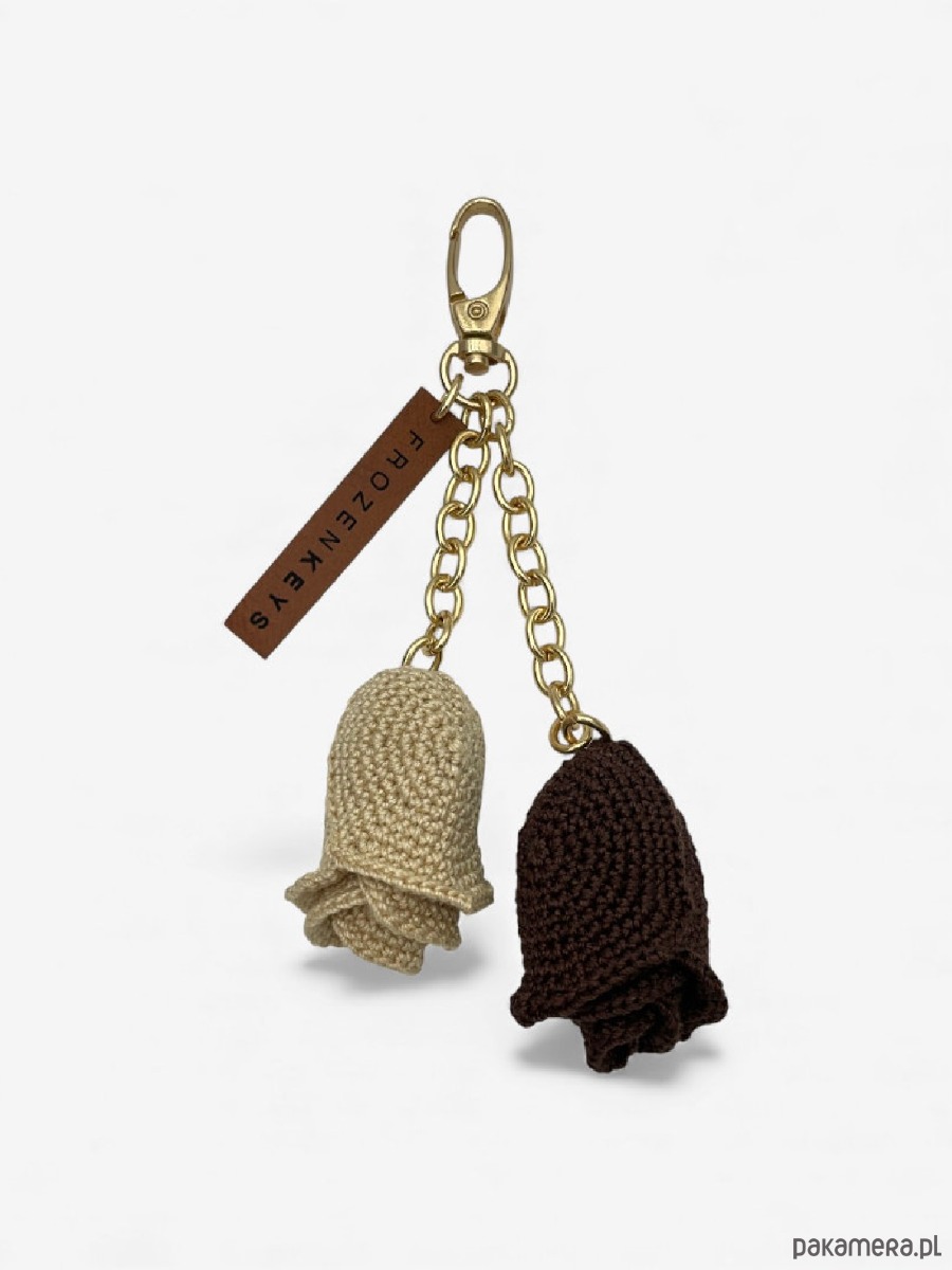Ten ręcznie wykonany brelok łączy w sobie dwie starannie szydełkowane róże — każda zwinięta, dopracowana i po prostu… zachwycająca.