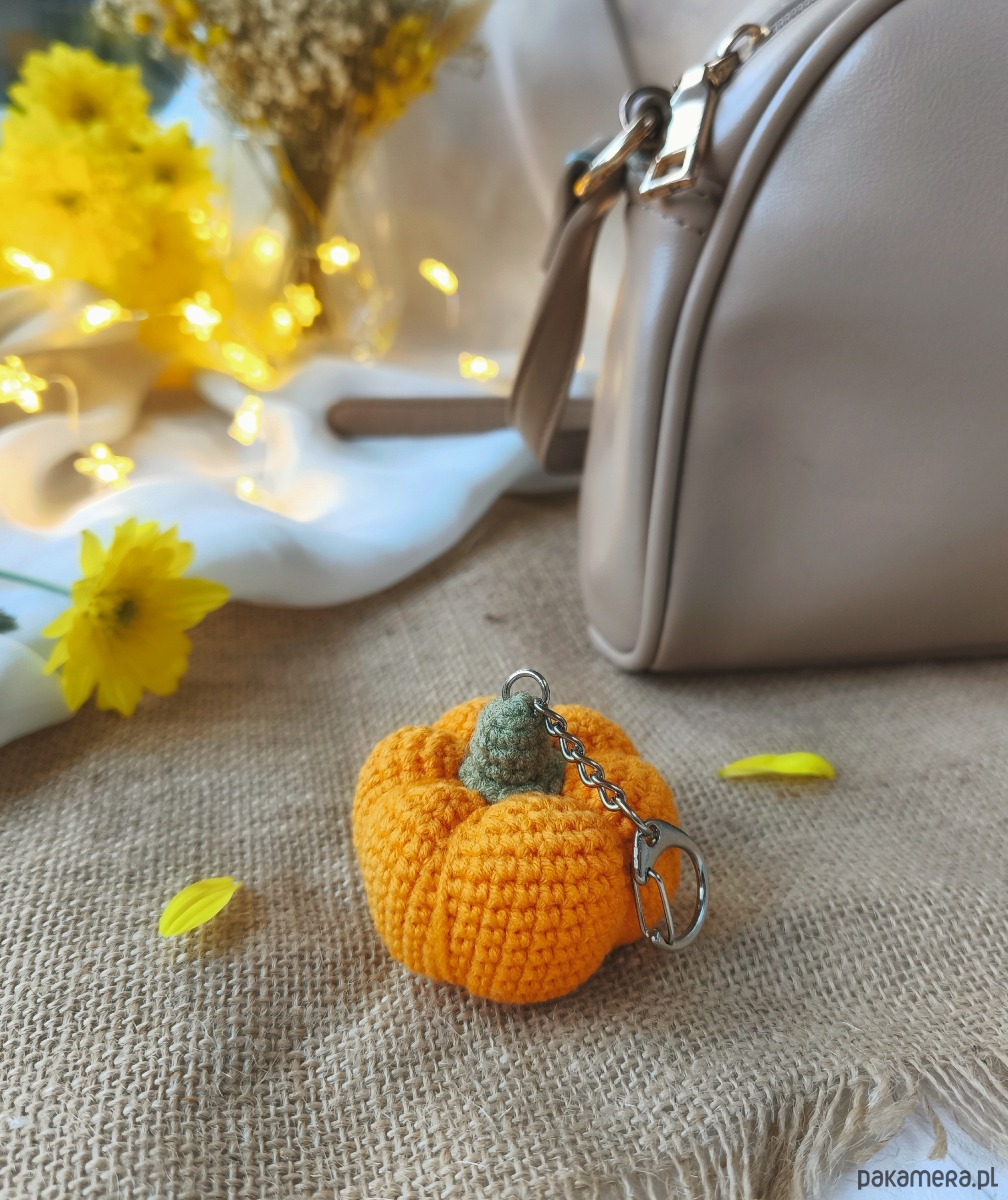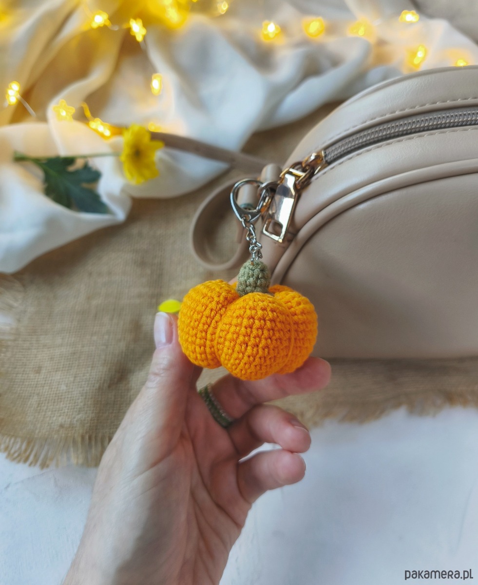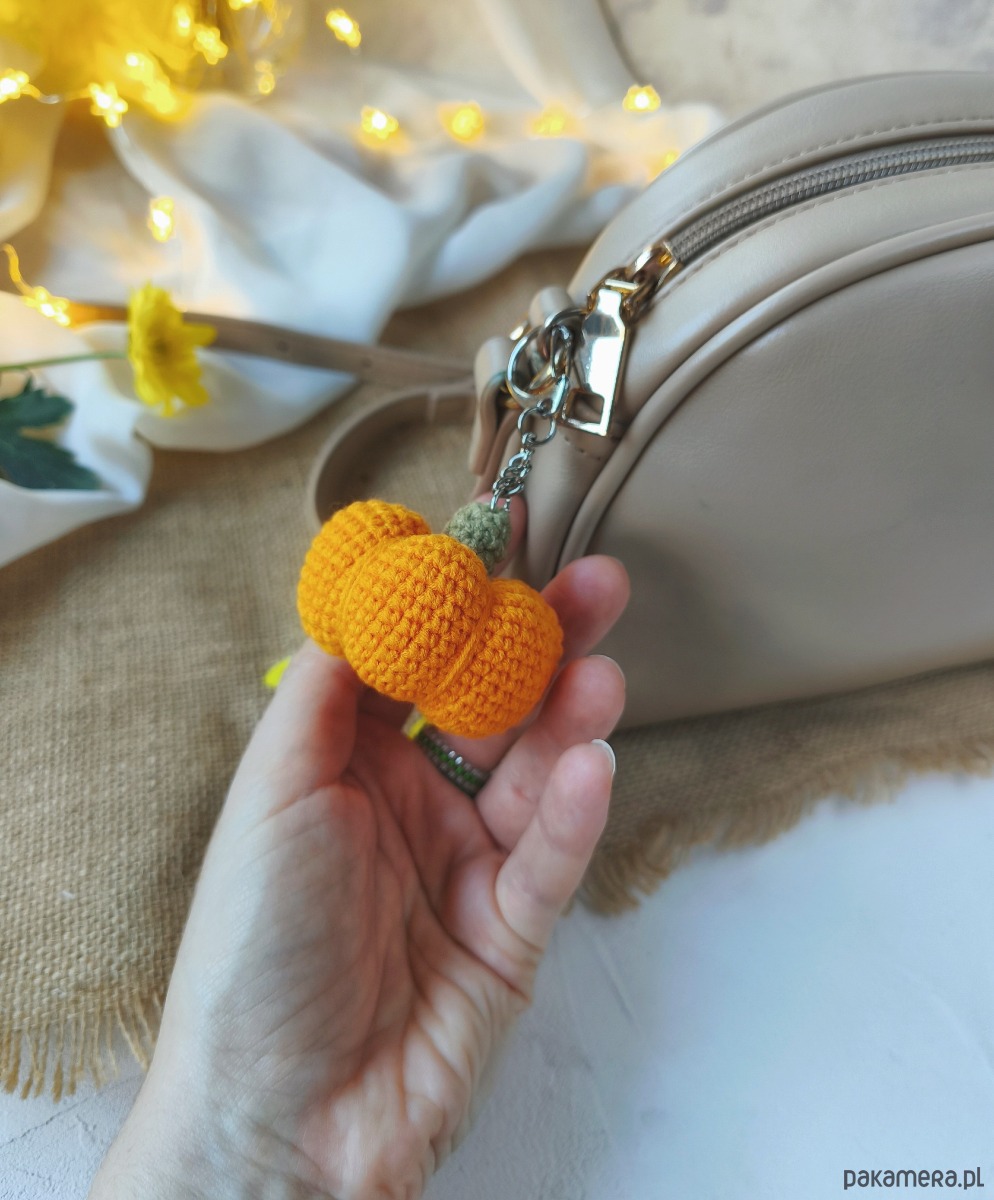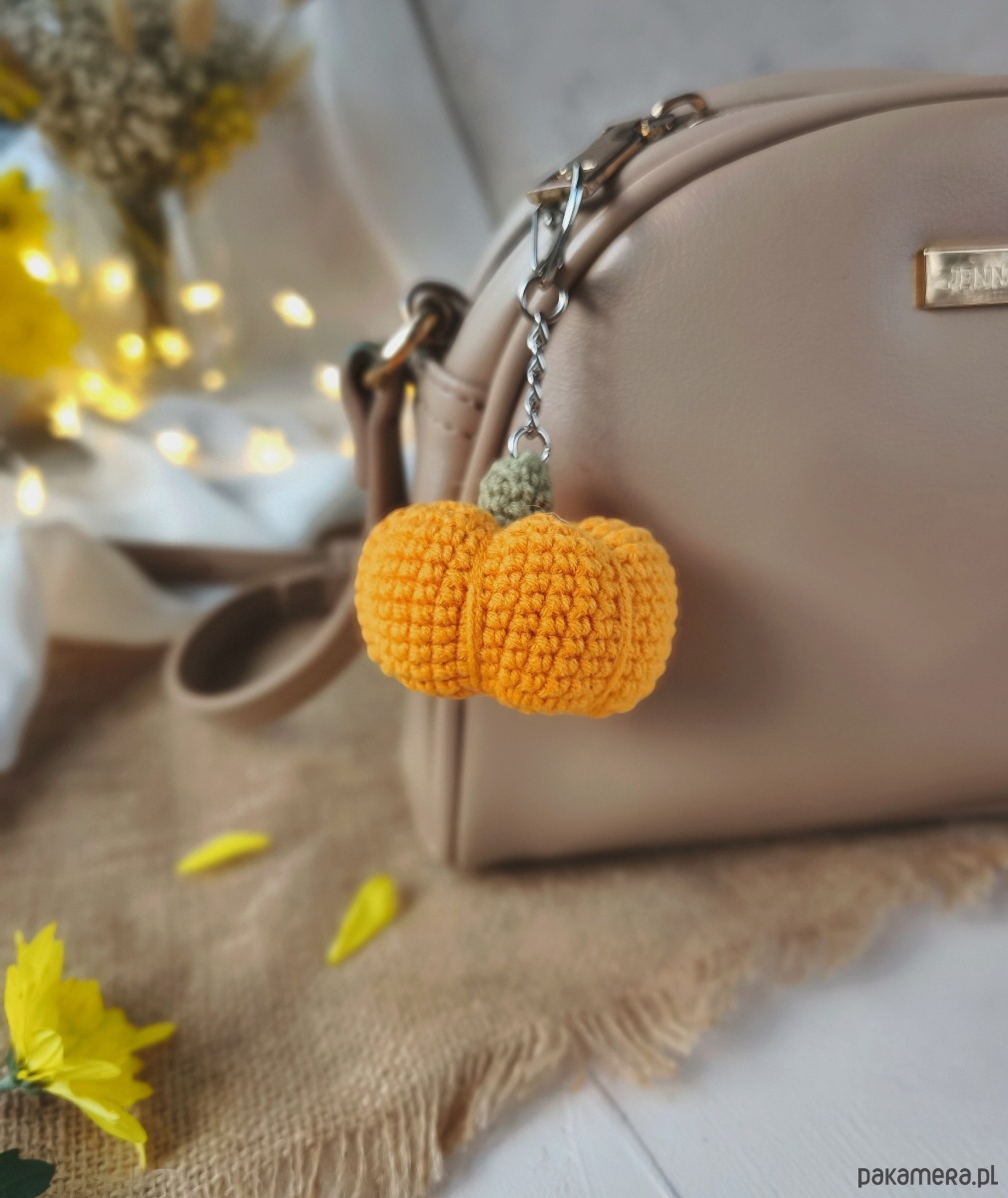 Szydełkowy breloczek dynia - mały jesienny akcent do codziennej stylizacji.