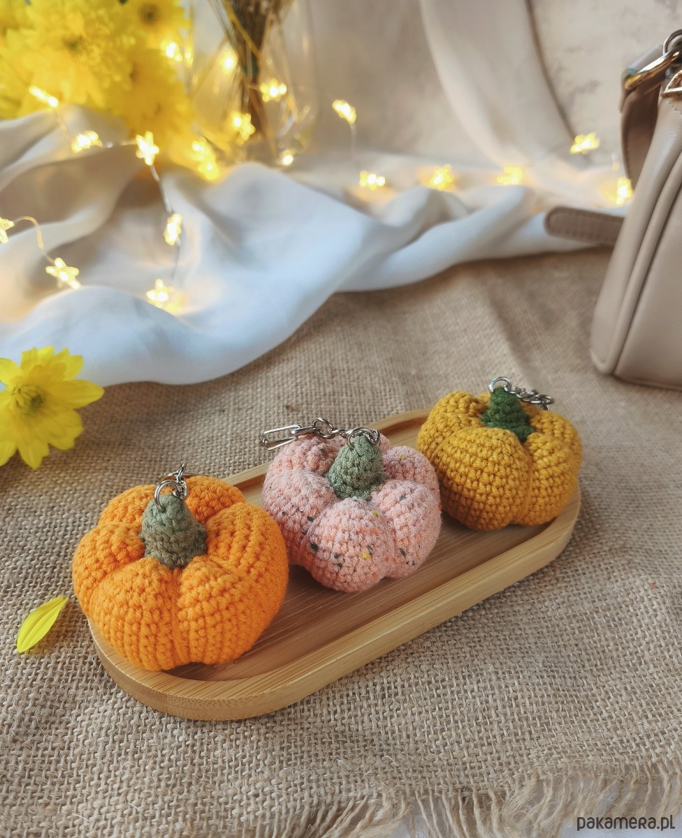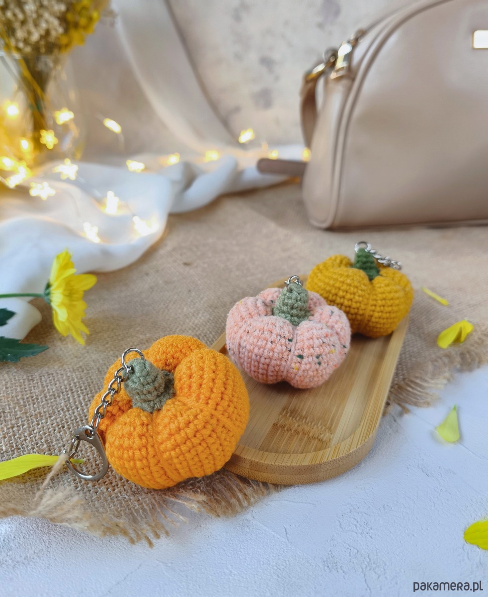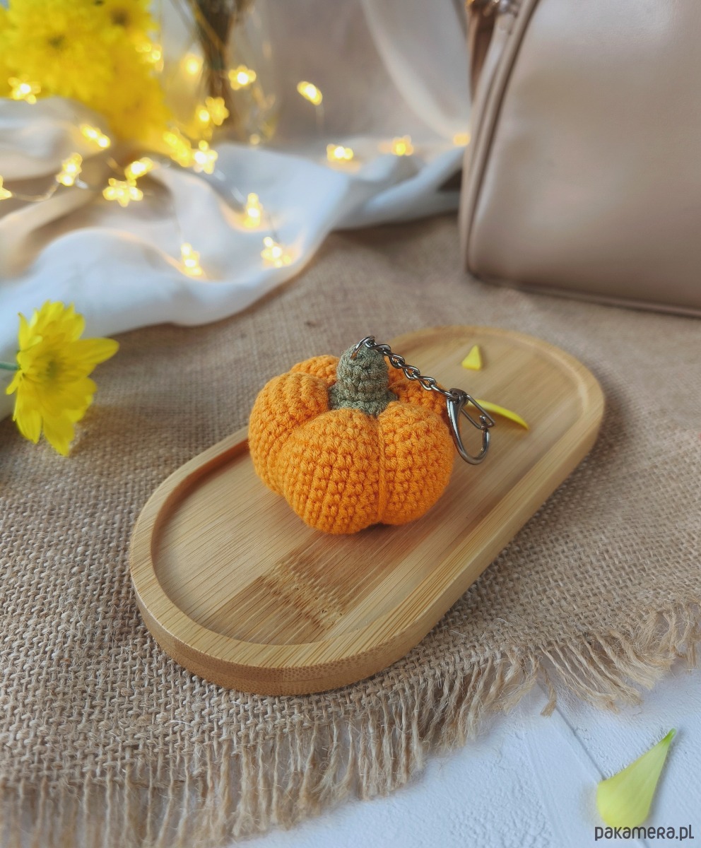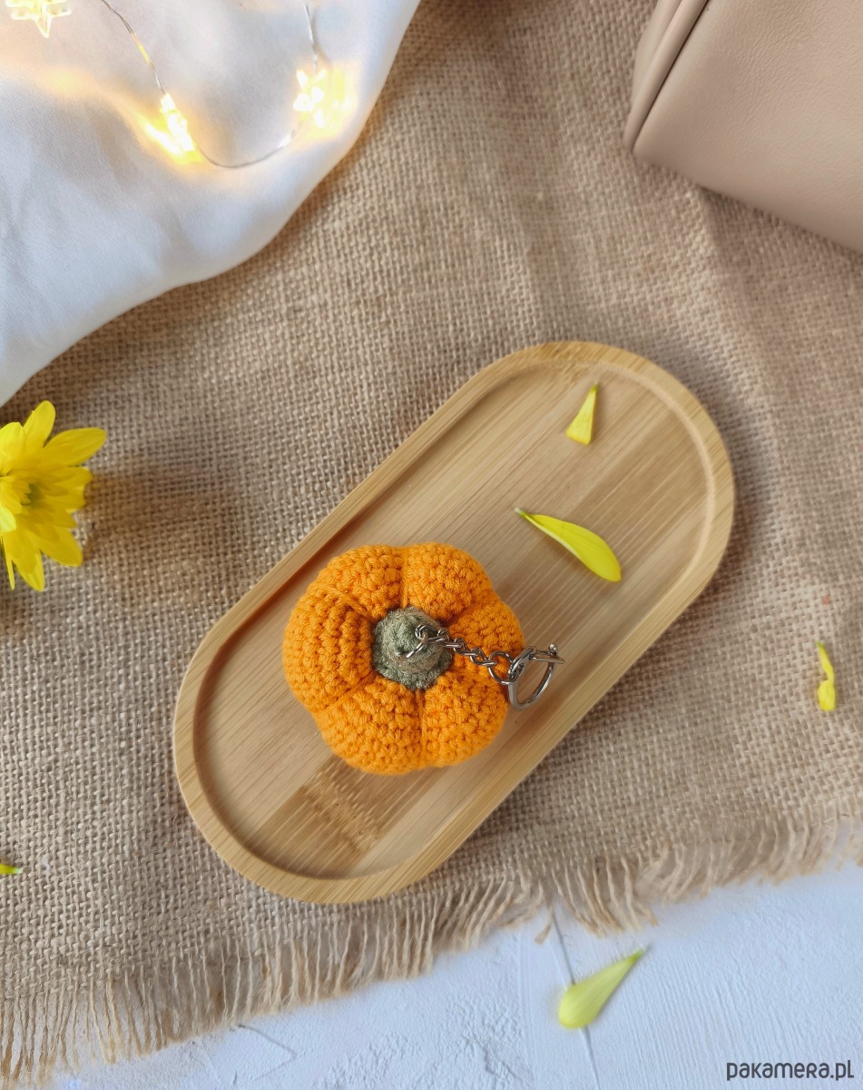 Szydełkowy breloczek dynia - mały jesienny akcent do codziennej stylizacji.