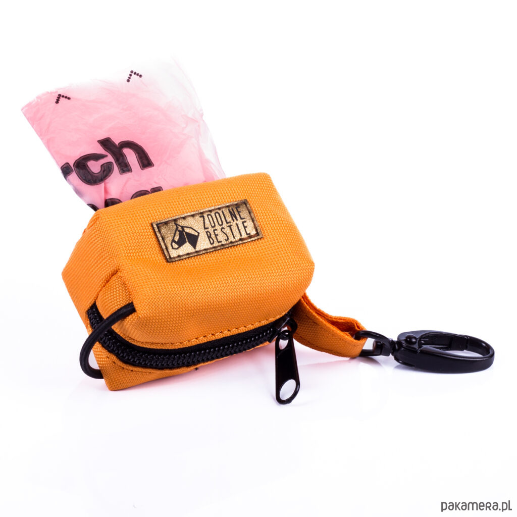Jak to działa? Etui zaszyte jest w taki sposób, że tworzy szeroki otwór przez który wyciągasz woreczki w razie potrzeby. Wygodnie dopniesz je do kółka w smyczy lub paska za pomocą karabińczyka, dodatkowo żeby „nie dyndało” wszyliśmy kawałek elastycznej gumy, pod który wsuniesz każdą taśmową smycz. A kiedy woreczki się skończą, łatwo uzupełnisz zapas, bo etui otwierane jest na wygodny zamek.