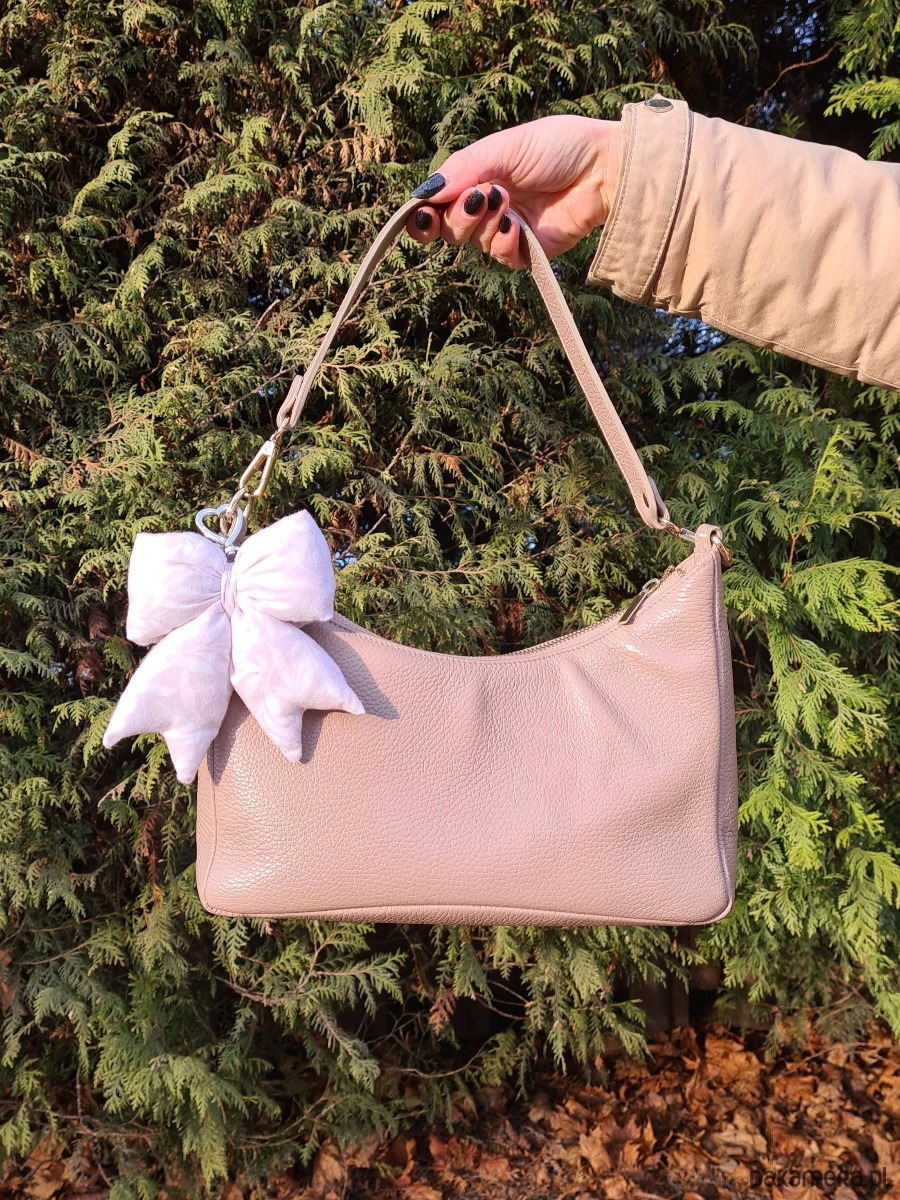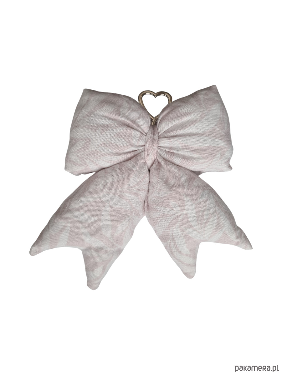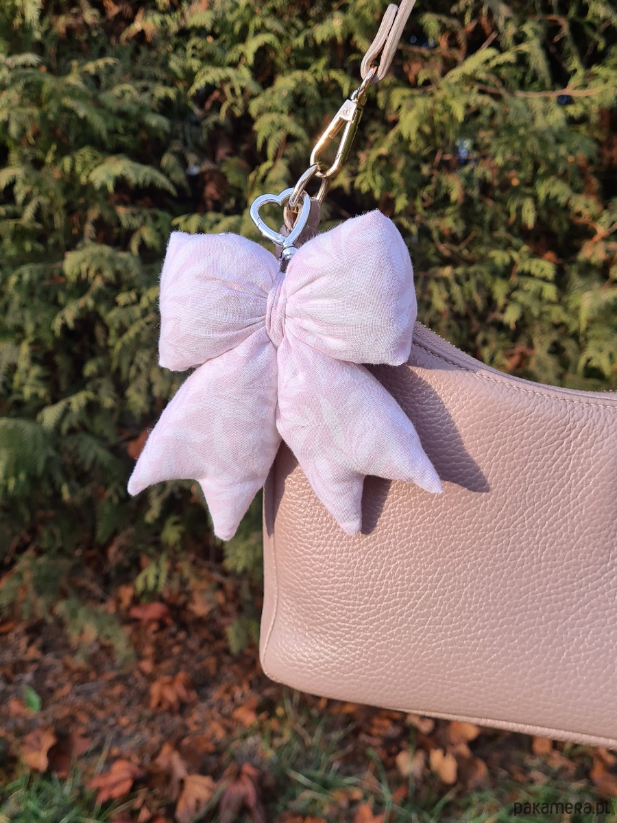 Uroczy brelok w kształcie kokardy, uszyty ręcznie z materiałów z drugiego obiegu. Wypełniony jest ścinkami z owaty, która normalnie wylądowałaby już na śmietniku, ale my dałyśmy im kolejną szansę w pięknym wydaniu. Dzięki karabińczykowi może służyć jako stylowa ozdoba torebki lub praktyczna zawieszka do kluczy. Każdy egzemplarz jest niepowtarzalny.