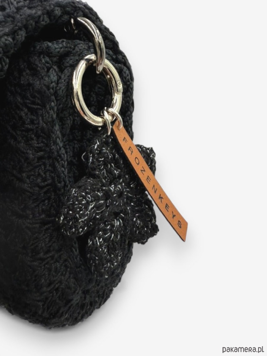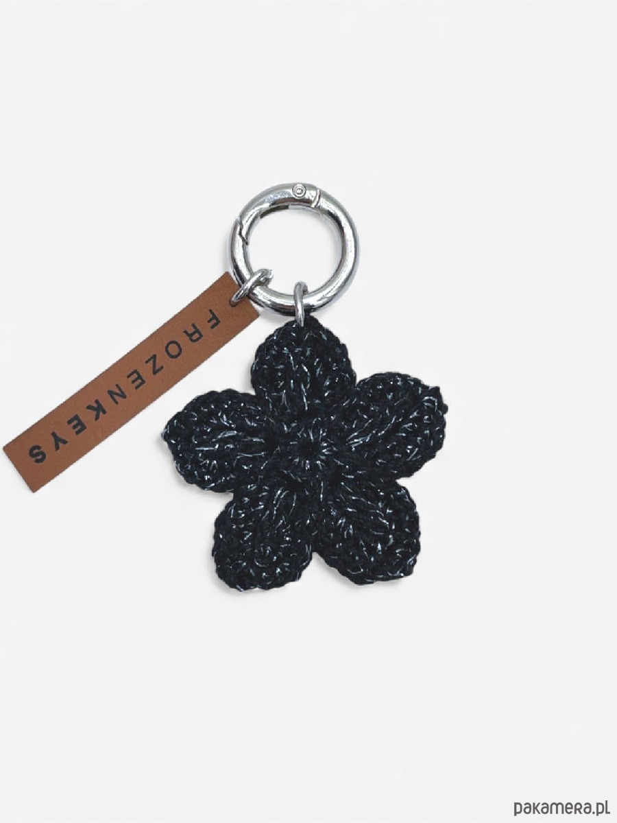 Brelok Kwiat Czarny ze Srebrną Błyszczącą Nitką