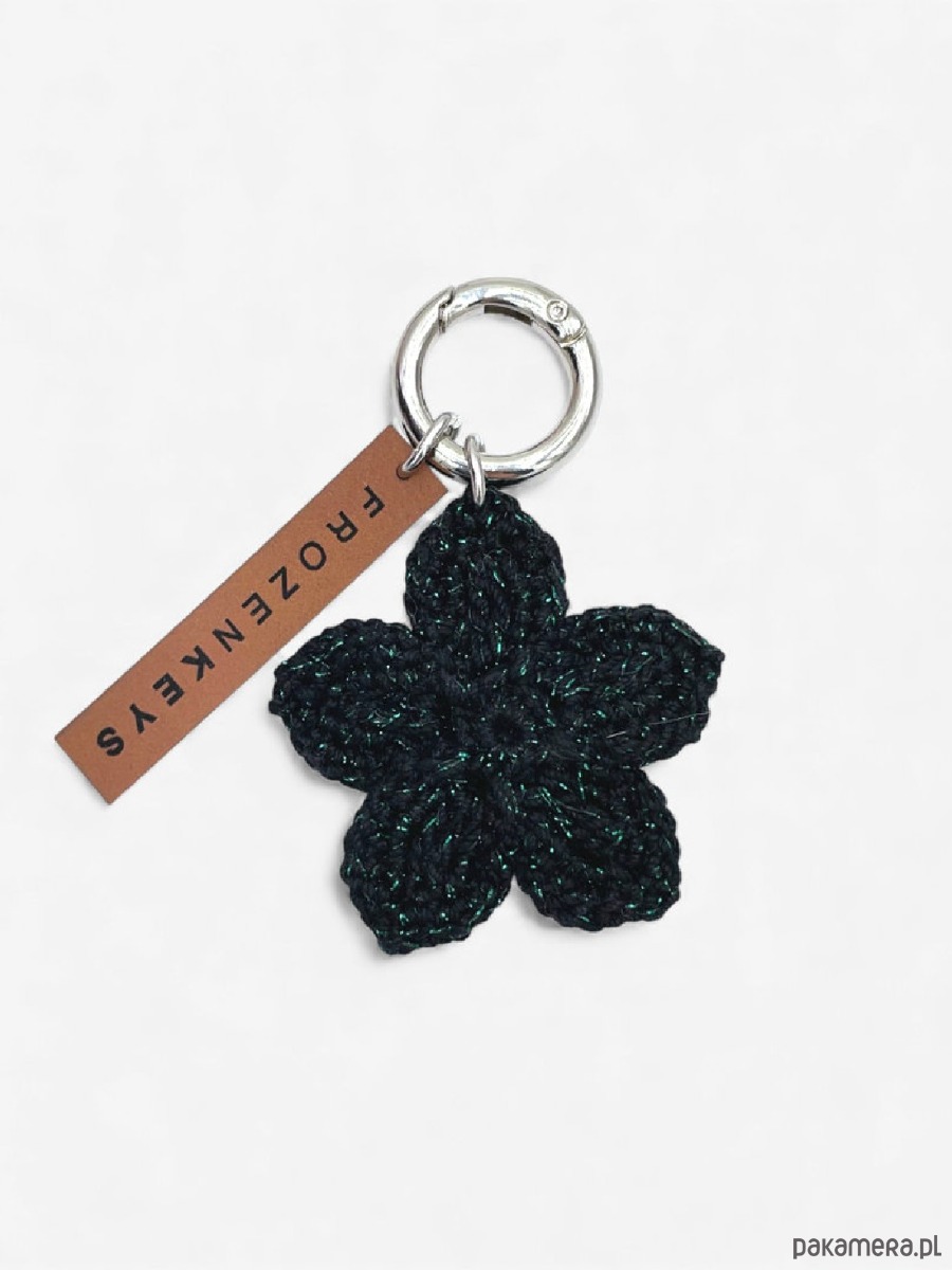 Brelok Kwiat Czarny ze Zieloną Błyszczącą Nitką