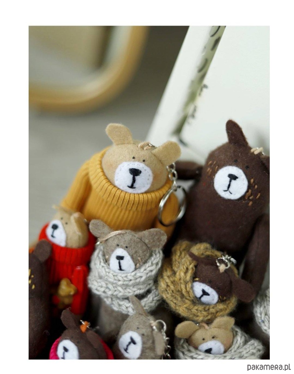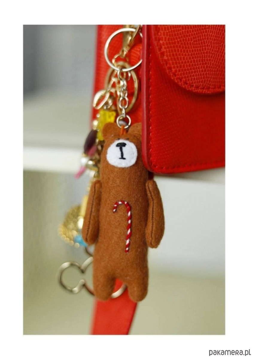 Breloczki misie zostały uszyte z filcu akrylowego. Wypełnienie stanowi certyfikowana owatą.