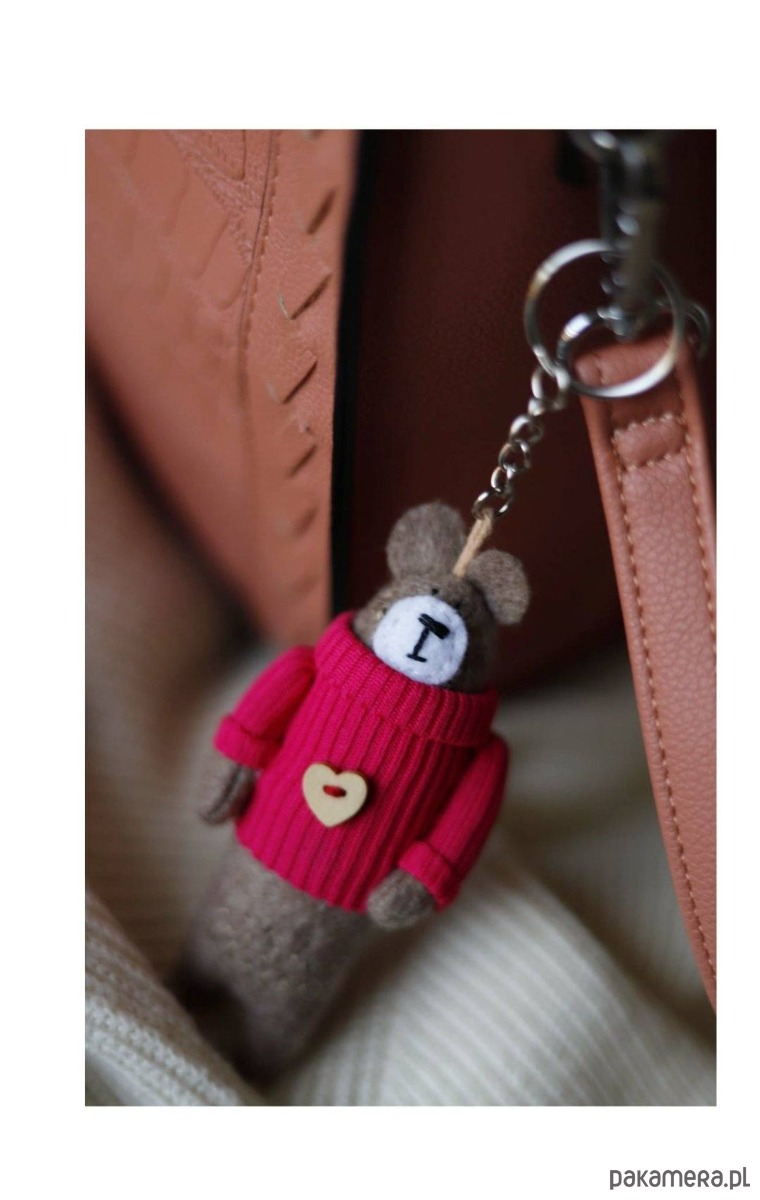 Breloczki misie zostały uszyte z filcu akrylowego. Wypełnienie stanowi certyfikowana owatą.