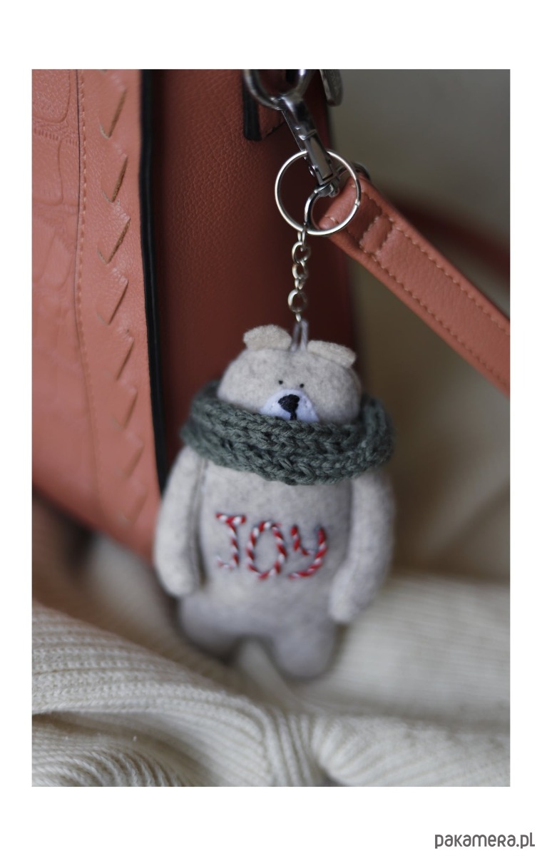 Breloczki misie zostały uszyte z filcu akrylowego. Wypełnienie stanowi certyfikowana owatą.