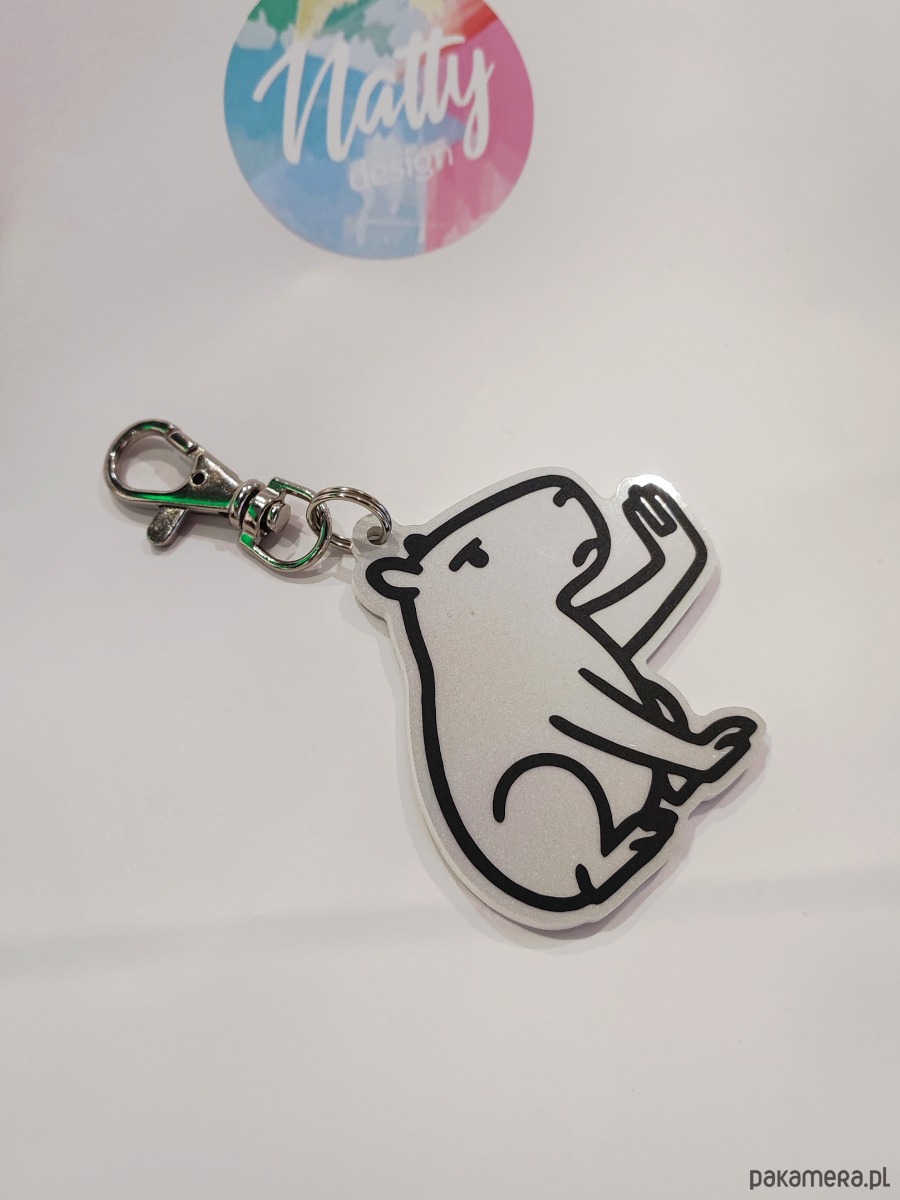 Autorski brelok odblaskowy, do zawieszenia przy torebce, plecaku lub nerce, a także na suwak kurtki.
