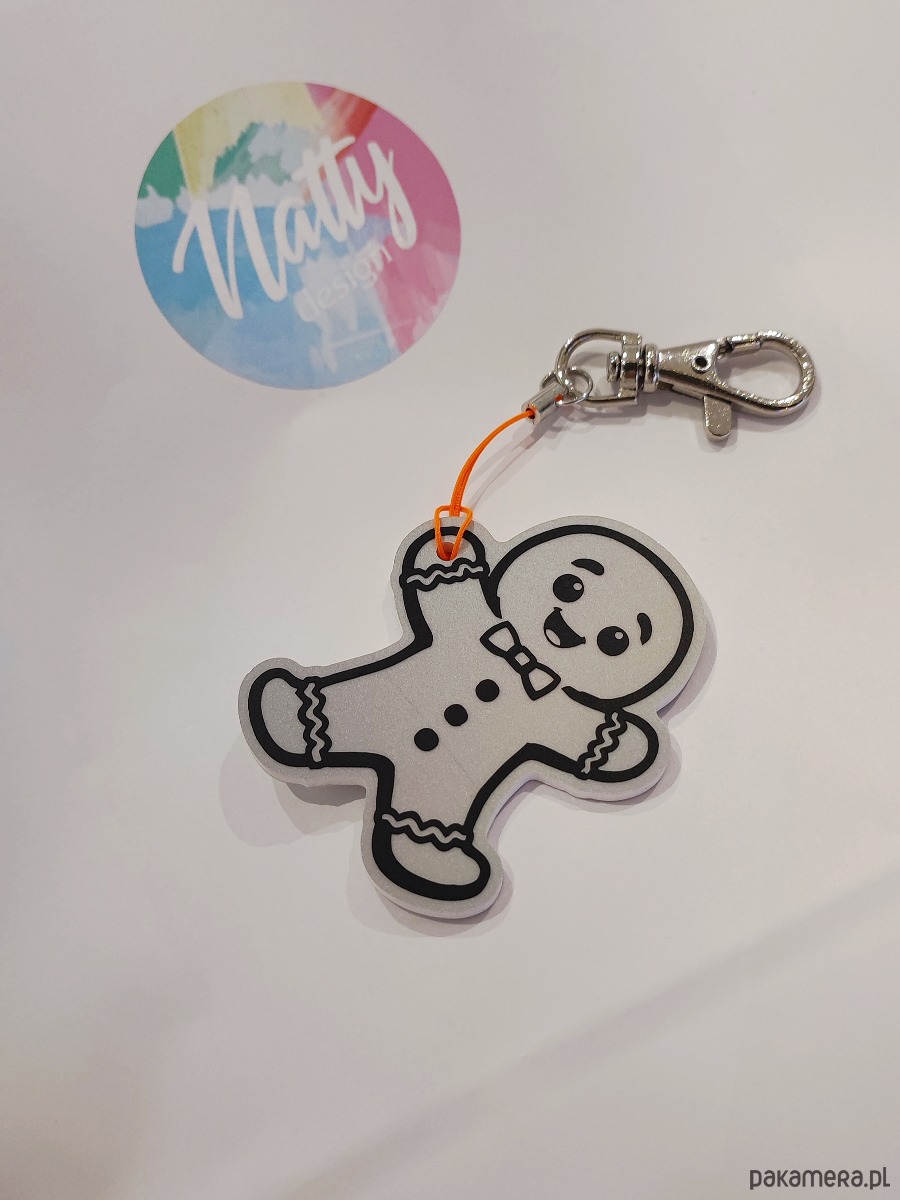 Autorski brelok odblaskowy, do zawieszenia przy torebce, plecaku lub nerce, a także na suwak kurtki.