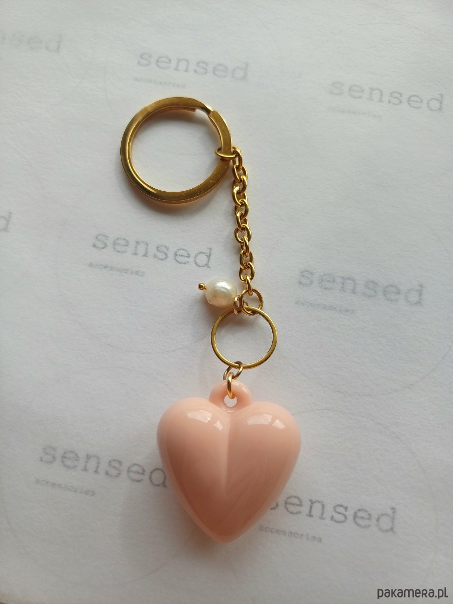 Elementy : podstawa breloka wykonana ze stali szlachetnej, serce - wykonane z akrylu, perła naturalna : 8 mm