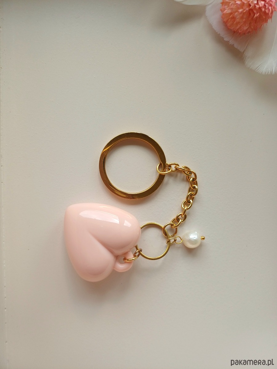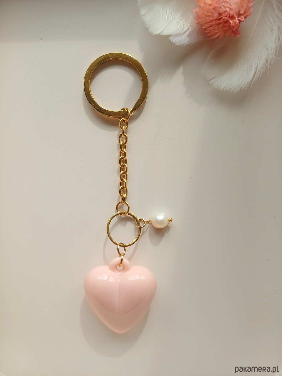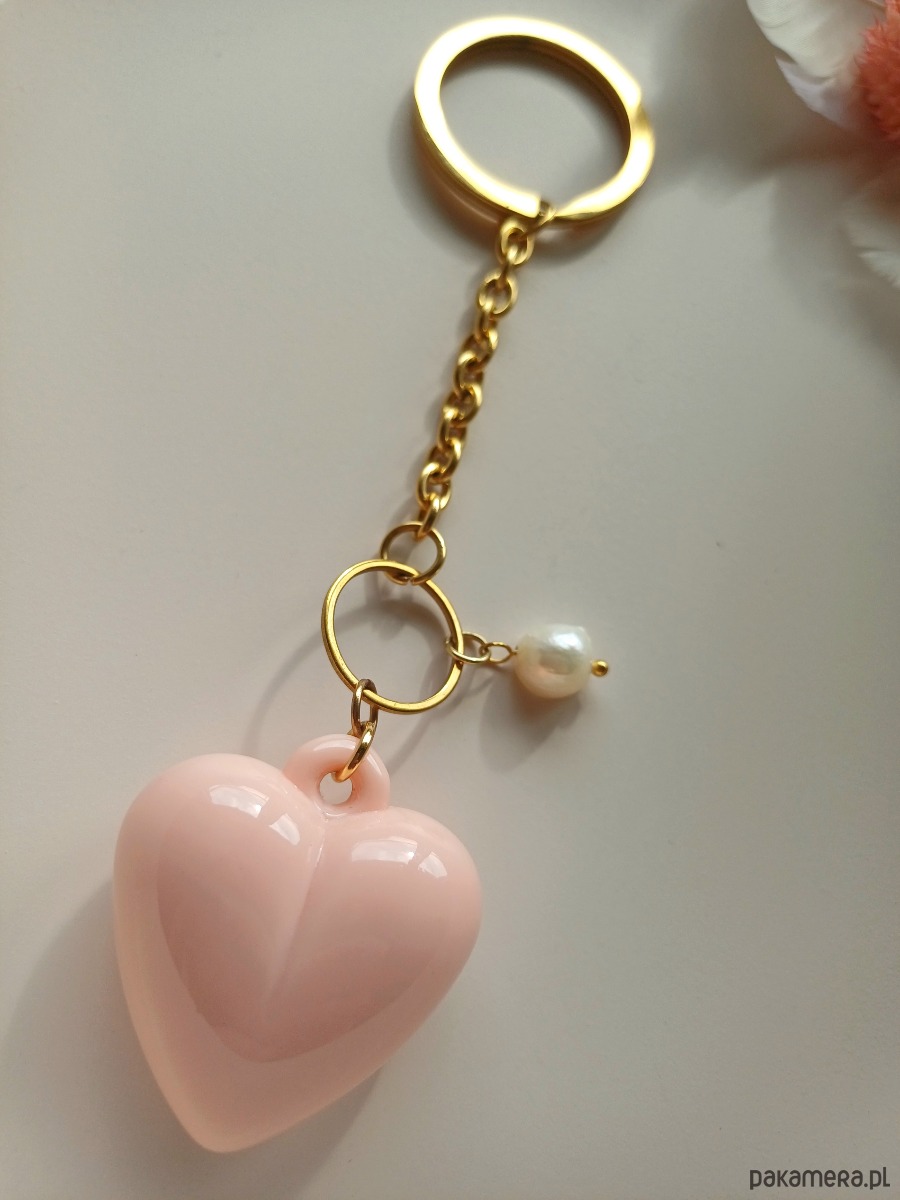 Elementy : podstawa breloka wykonana ze stali szlachetnej, serce - wykonane z akrylu, perła naturalna : 8 mm