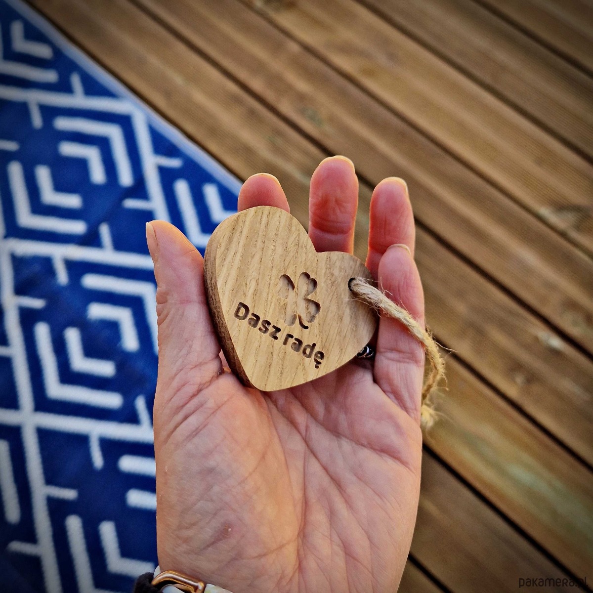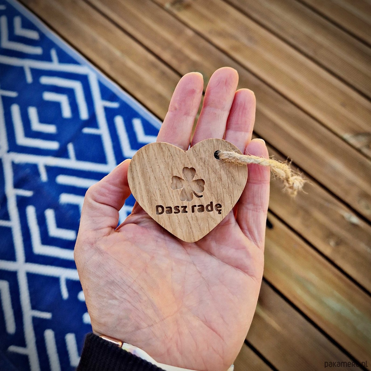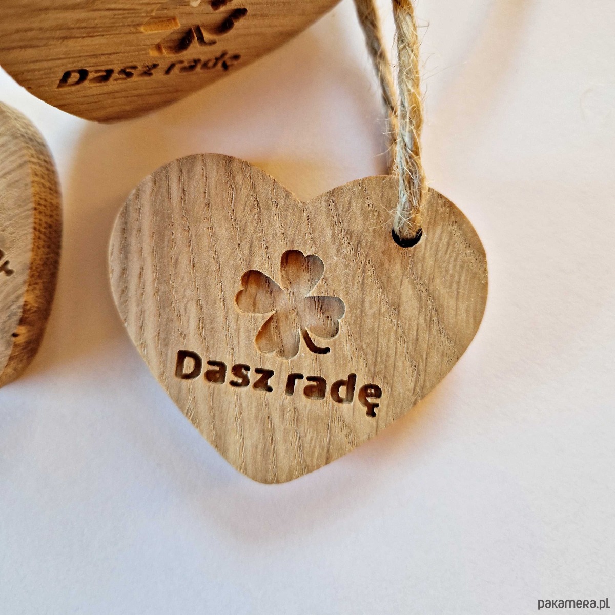 Brelok serce z drewna, na szczęście dasz radę