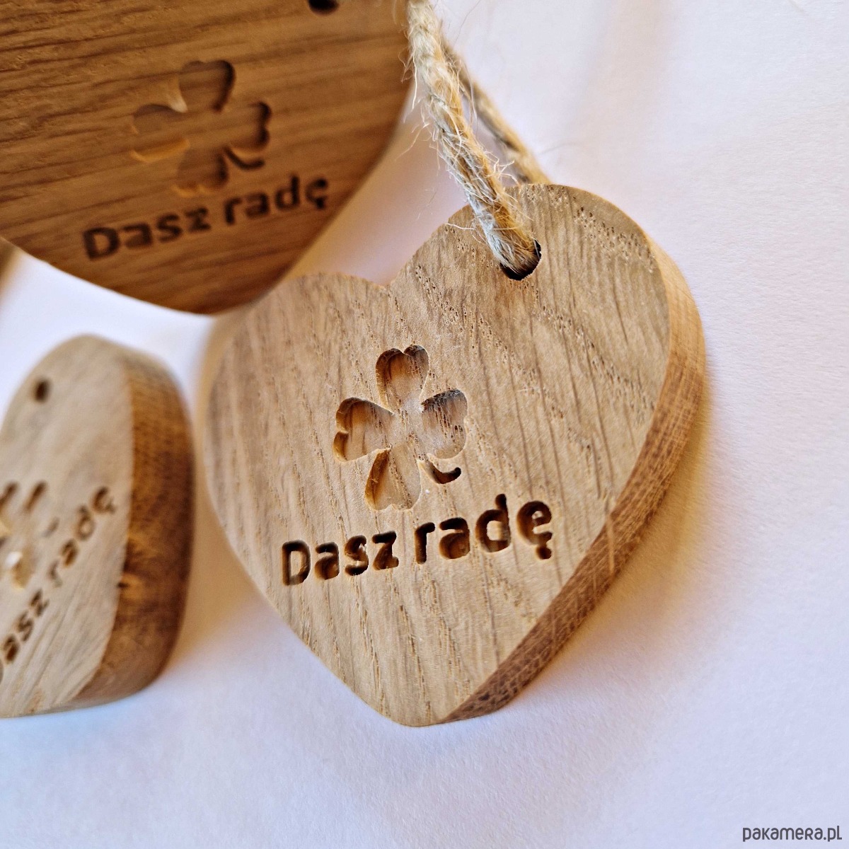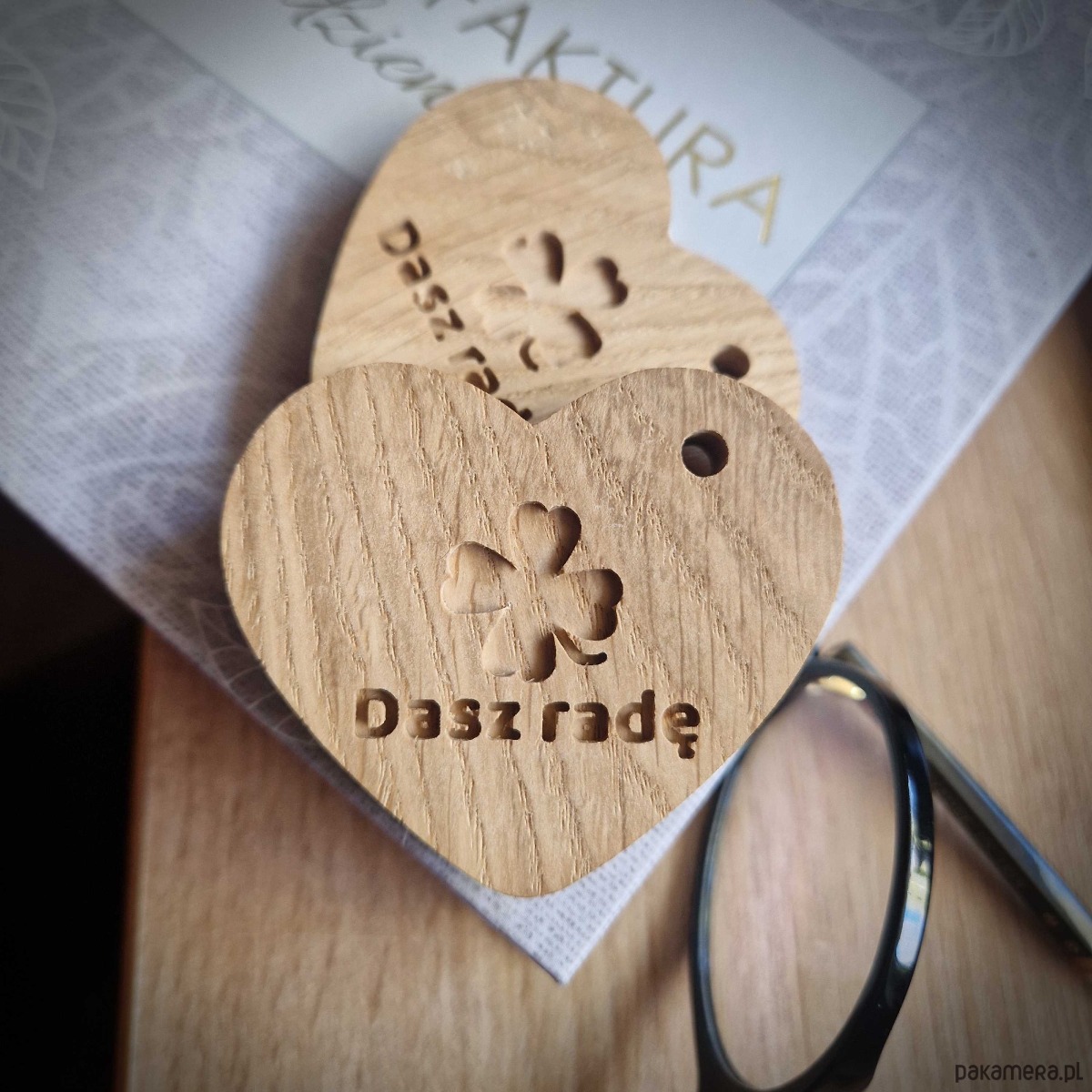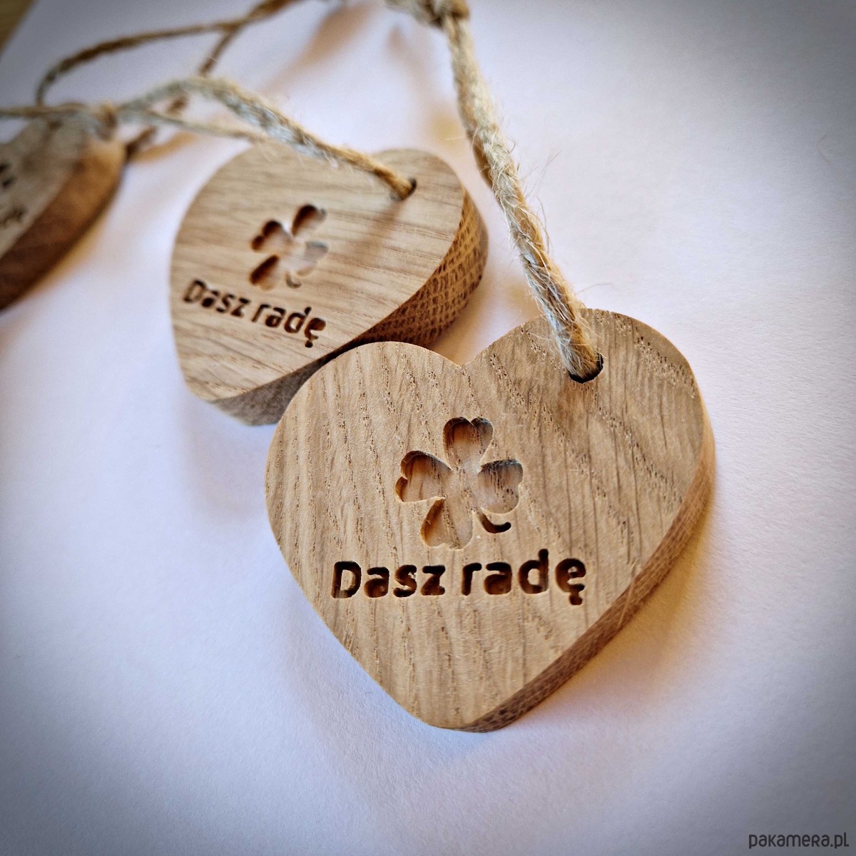 Brelok serce z drewna, na szczęście dasz radę