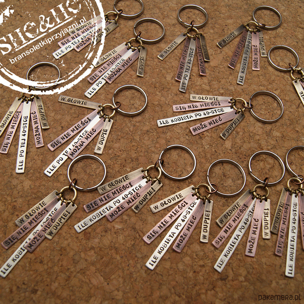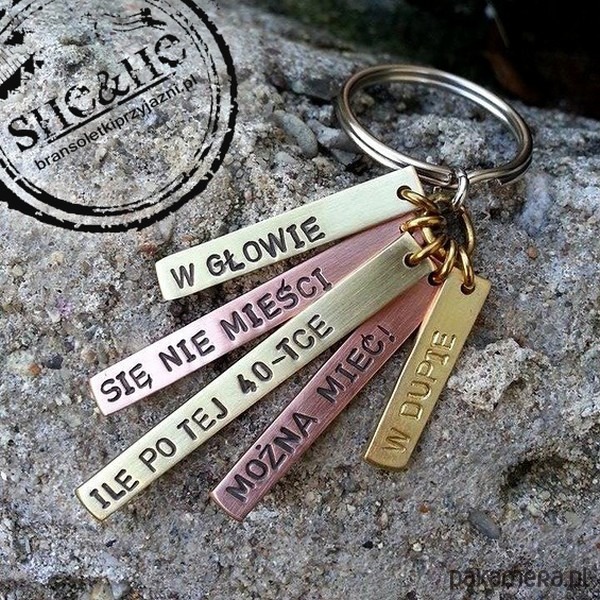 brelok z 5 cioma blaszkami z napisem jak na zdjęciu.
