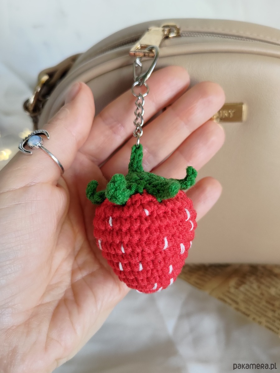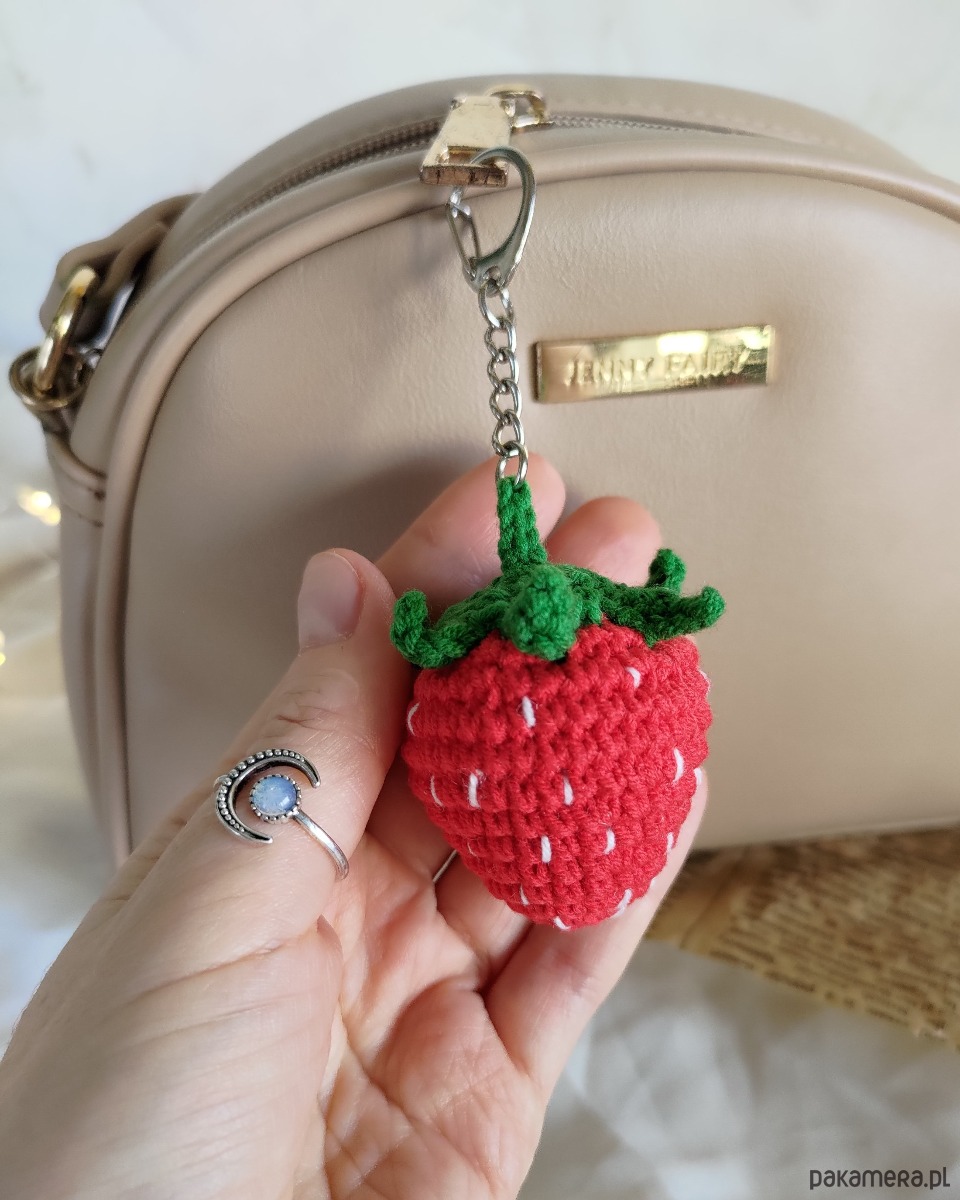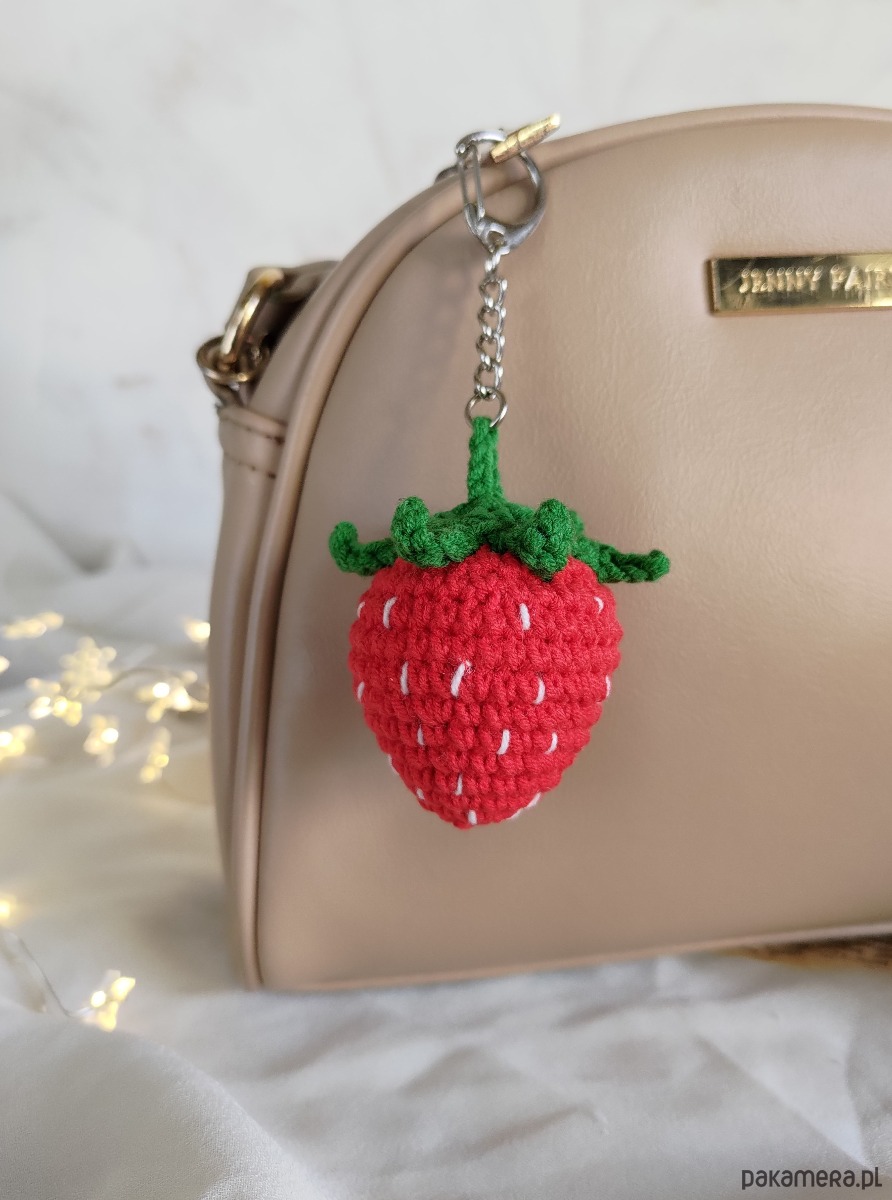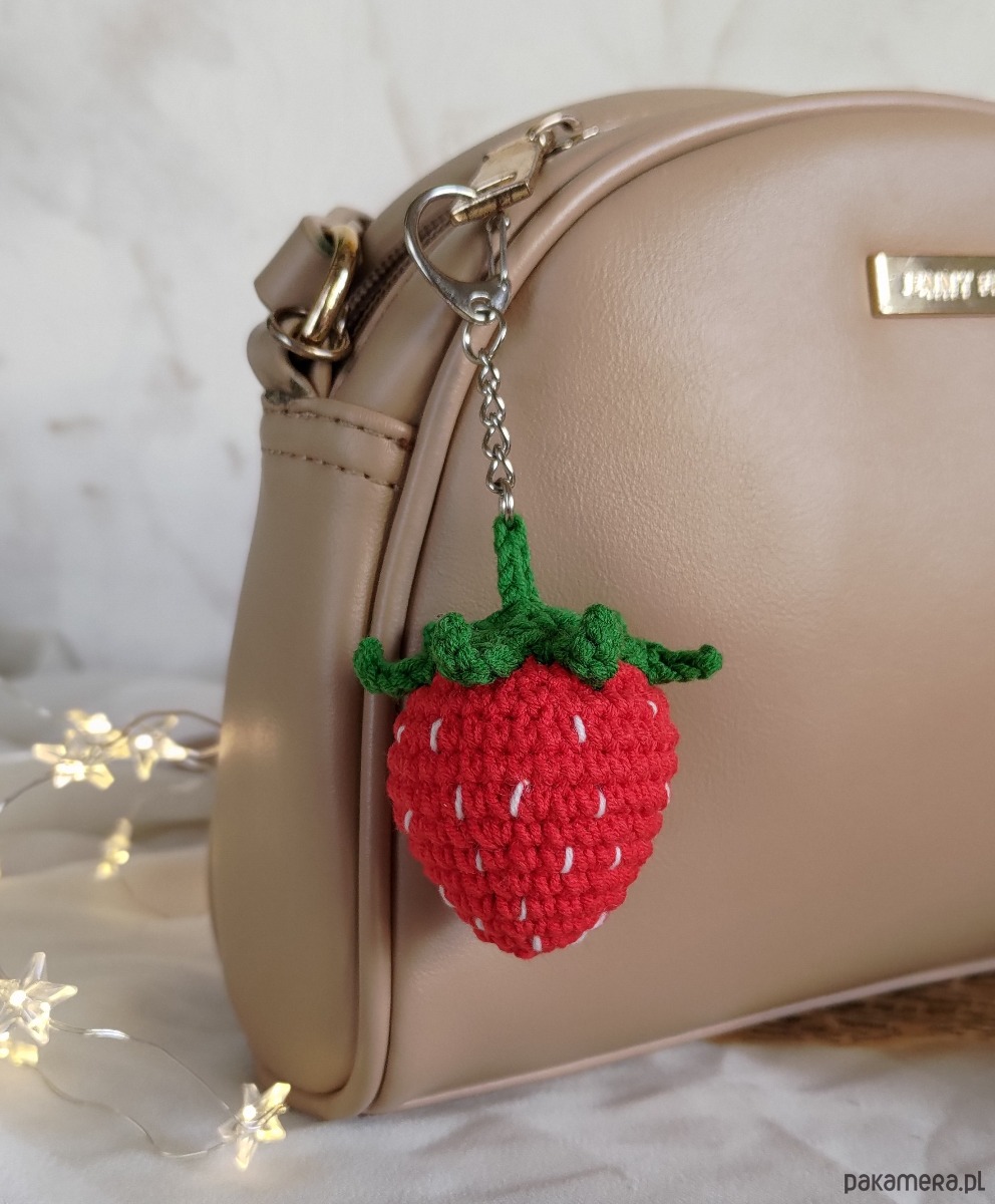 Szydełkowy letni breloczek truskaweczka będzie doskonałym dodatkiem do plecaka/torebki/kluczy oraz wspaniałym prezentem na każdą okazję i wyjątkowy moment.