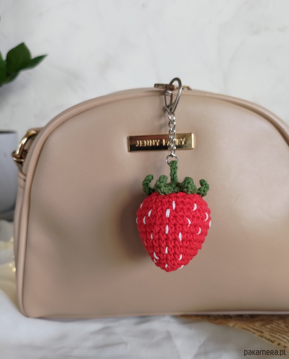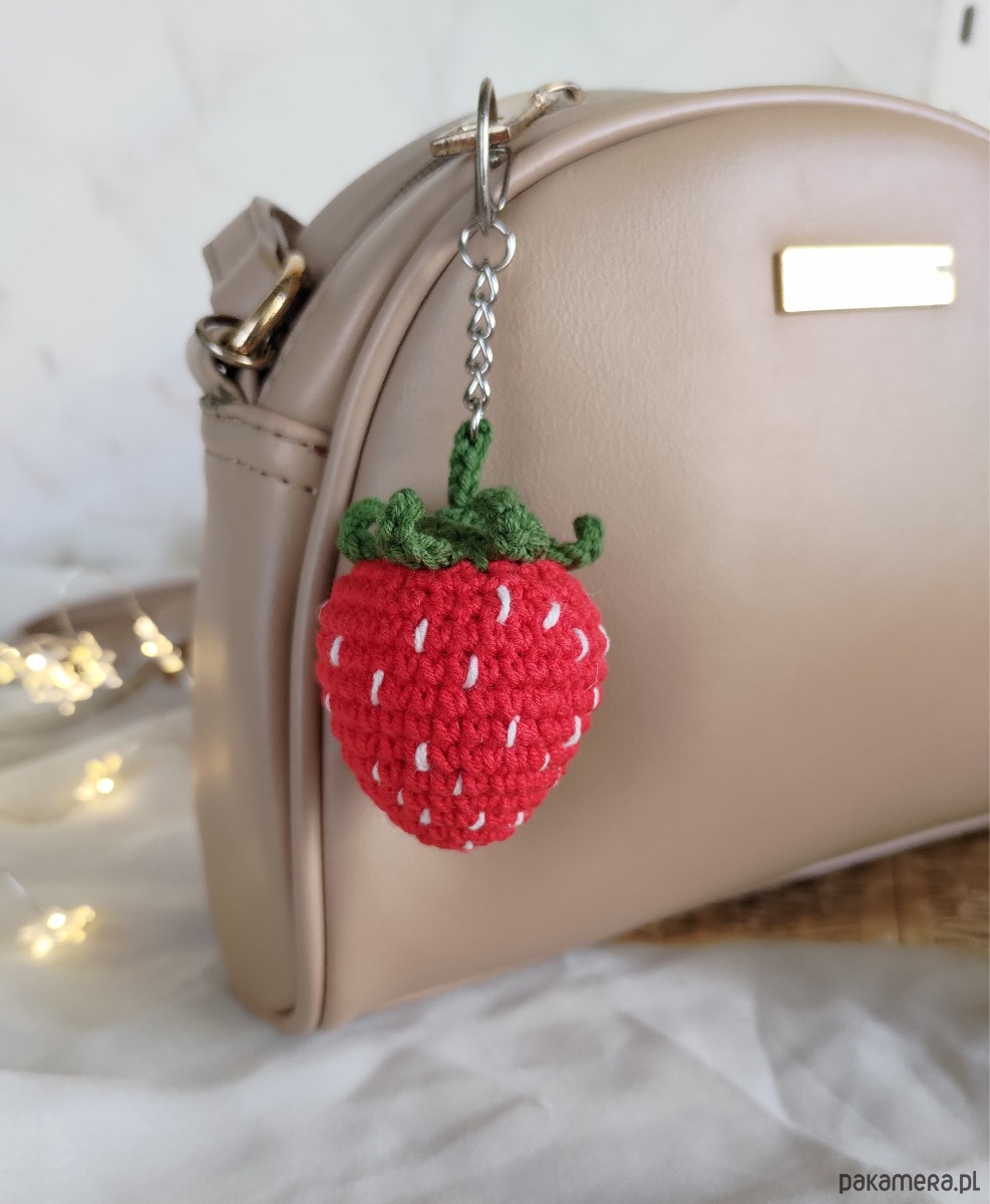 Szydełkowy letni breloczek truskaweczka będzie doskonałym dodatkiem do plecaka/torebki/kluczy oraz wspaniałym prezentem na każdą okazję i wyjątkowy moment.