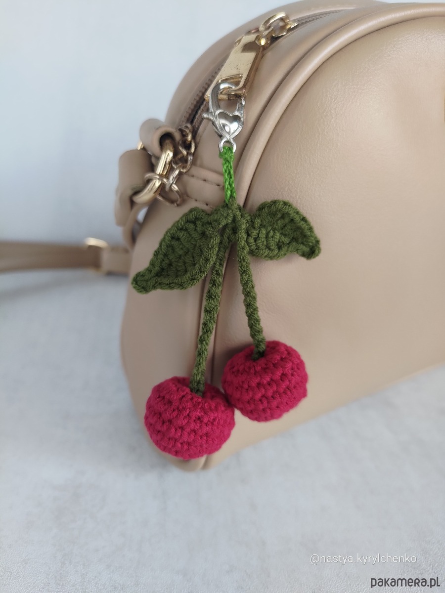 Szydełkowy breloczek wiśnia będzie doskonałym dodatkiem do plecaka/torebki/kluczy oraz wspaniałym prezentem na każdą okazję i wyjątkowy moment.