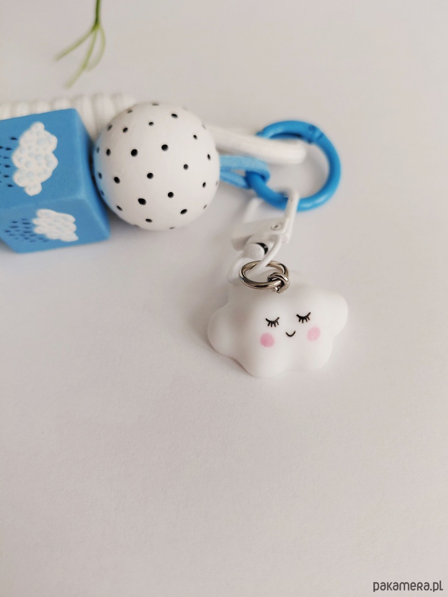 Brelok można delikatnie myć miękką, wilgotną ściereczką.
