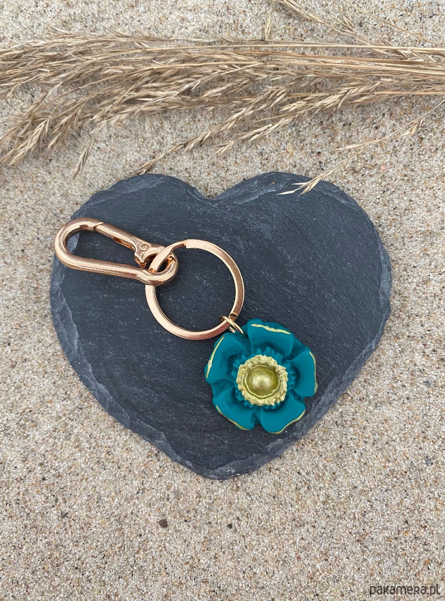 #handmade #brelok #glinapolimerowa #rękodzieło #dodatkiręcznie #unikaty #kwiat #torebkazdodatkiem #ręcznierobione #prezentdlaniej #turkus #złoto