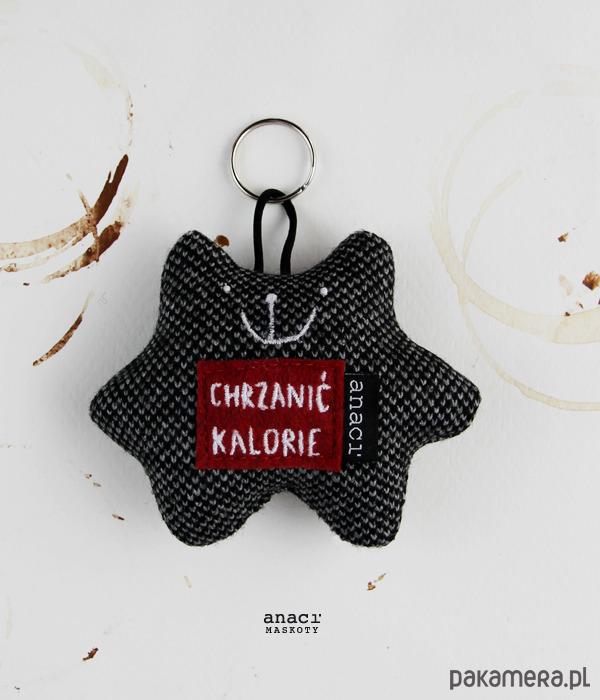Maskot został uszyty z tkaniny tweedowej, zaopatrzony w filcową plakietkę z wyhaftowaną deklaracją, mierzy sobie blisko 10 cm.