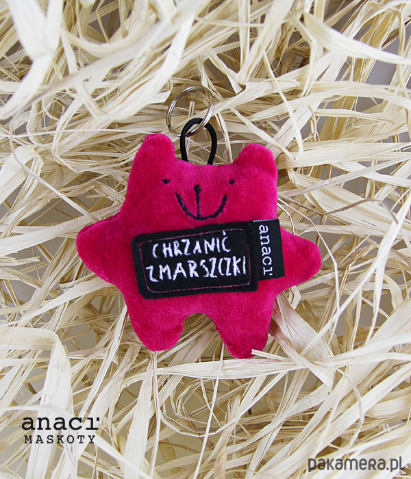 Maskot został uszyty z weluru w soczystym kolorze fuksji, zaopatrzony został w filcową plakietkę z wyhaftowaną deklaracją, mierzy sobie 9 cm.