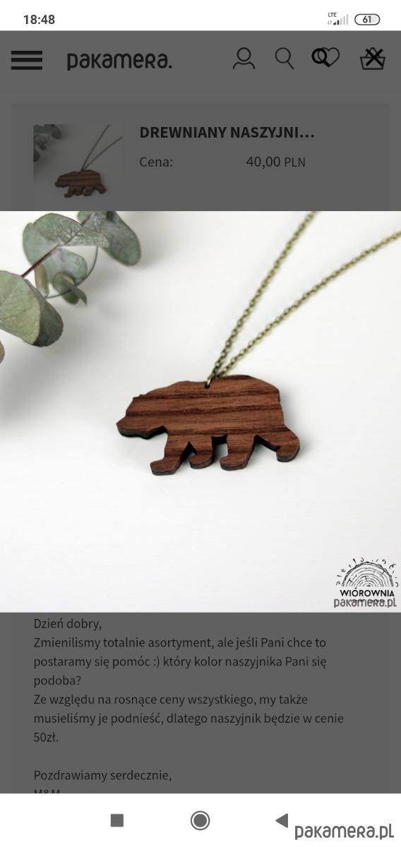 Ten przedmiot wystawił przedsiębiorca. Każdy zakup, którego dokonujesz u niego jako konsument, jest chroniony na mocy przepisów konsumenckich. Oznacza to, że masz pewne prawa związane ze zwrotami, gwarancjami i inne, w zależności od przedmiotów, które kupisz, lub usług, które zlecisz. W zakup przedmiotu lub zlecenie usługi na Pakamera.pl zaangażowanych jest kilka podmiotów. Każdy z nich ma następujące obowiązki. Pakamera.pl: pełni funkcję pośrednią, dostarczając rozwiązania techniczne umożliwające zawarcie umowy; przyjmuje i płatności od Kupujących; przekazuje dane dostawy podane przez Kupująceg Sprzedającemu; informuje Sprzedającego o konieczności dostawy; przyjmuje zgłoszenia zwrotów/reklamacji od Kupujących; dokonuje zwrotu środków Kupującemu na zlecenie Sprzedającego; może uczestniczyć w komunikacji z Kupującym. Do obowiązków Sprzedającego przedsiębiorcy należy: wprowadzanie i wystawianie ofert na Pakamera; dostawa złożonych zamówień; komunikacja z Kupującym; uznawanie/odrzucanie zwrotów/reklamacji; przyjmowanie fizycznych zwrotów/reklamacji; potwierdzanie otrzymania zwrotu/reklamacji;zapewnienie gwarancji i innych praw konsumenta. Partner płatności: jest odpowiedzialny za zapewnienie metody płatności online, a partnerzy logistyczni zajmujący się dostawą są odpowiedzialni za dostarczenie przedmiotów do Kupującego, jak opisano w ich Regulaminach.