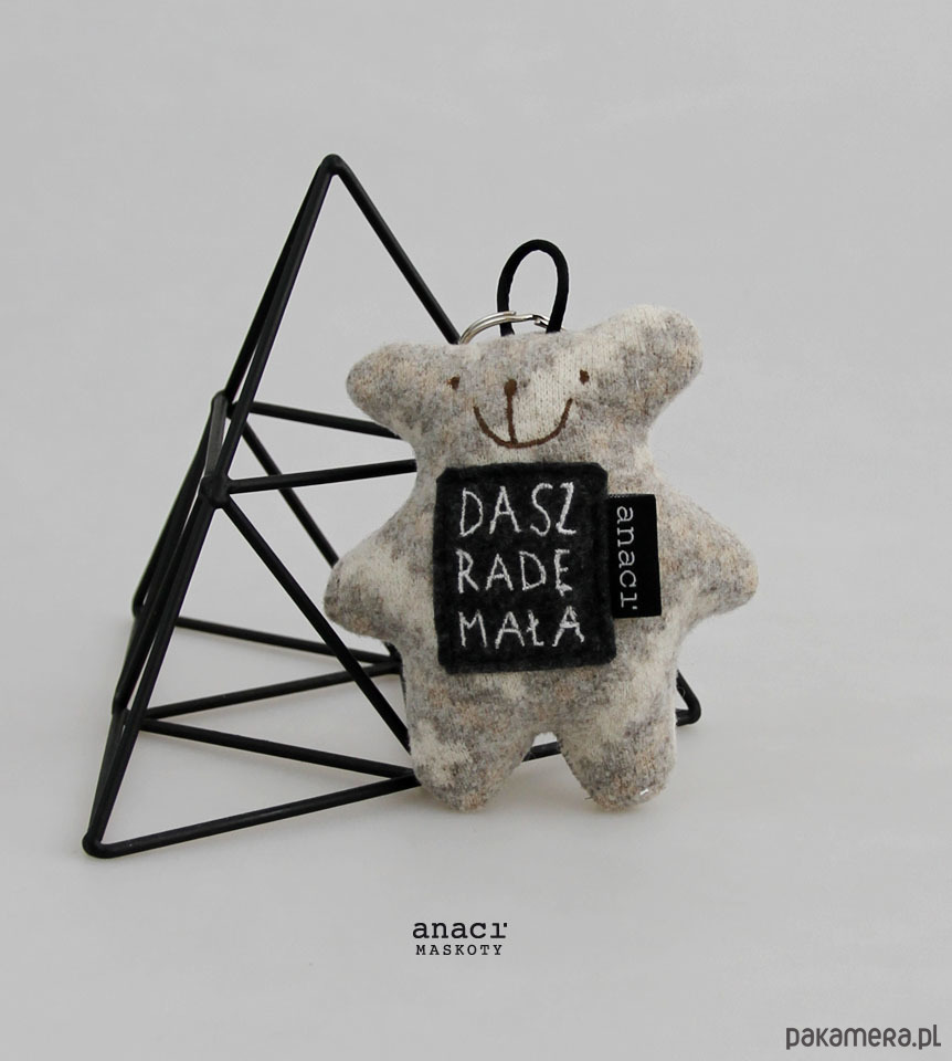 Mierzy sobie 10,5 cm., zaopatrzona w filcową plakietkę z wyhaftowaną dedykacją.