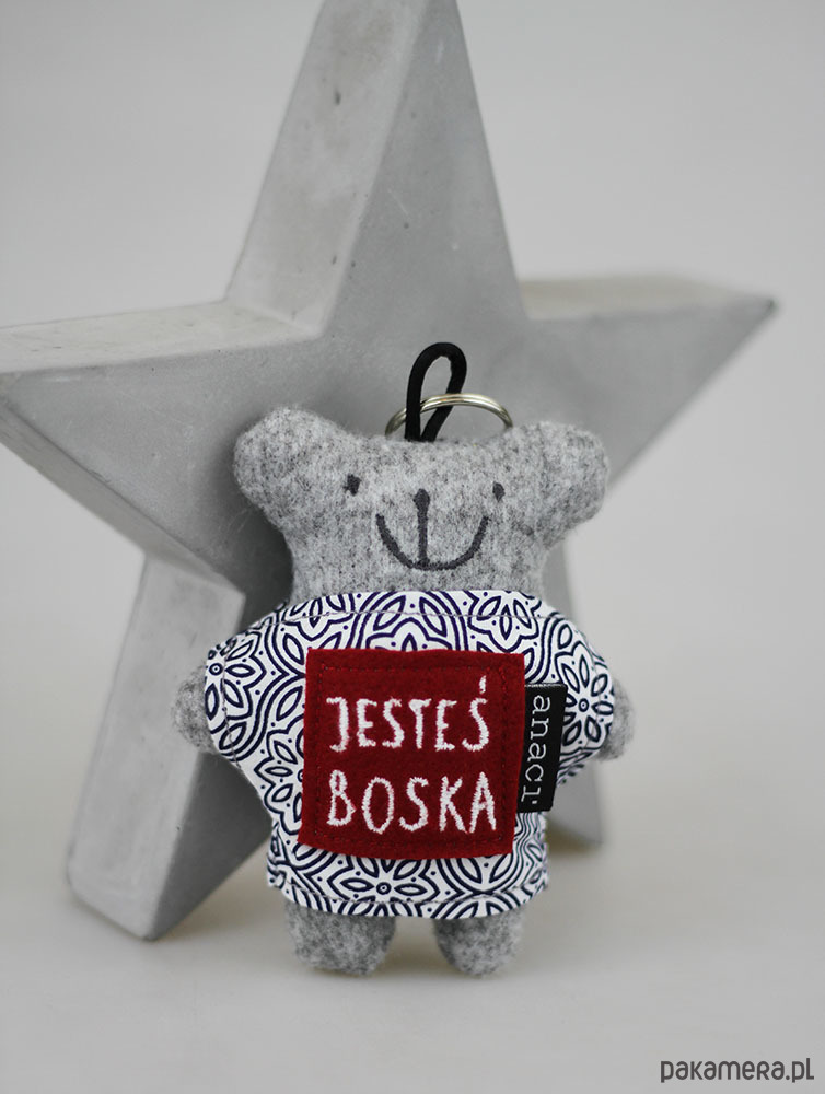 Mierzy sobie 10,5 cm., zaopatrzona w filcową plakietkę z wyhaftowaną dedykacją.