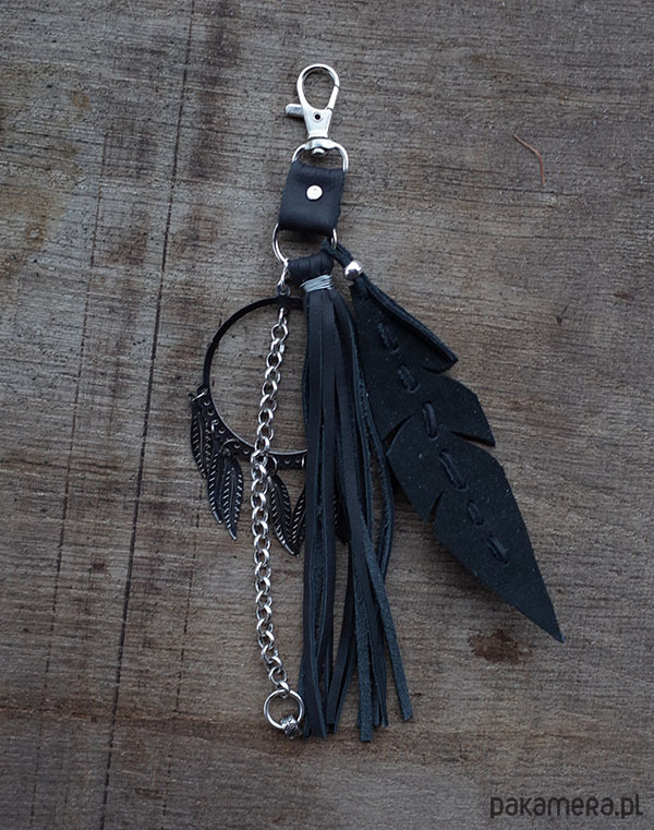 Dość duży brelok wykonany z rzemieni z cielęcej skóry. Może służyć również jako przywieszka do torebki.