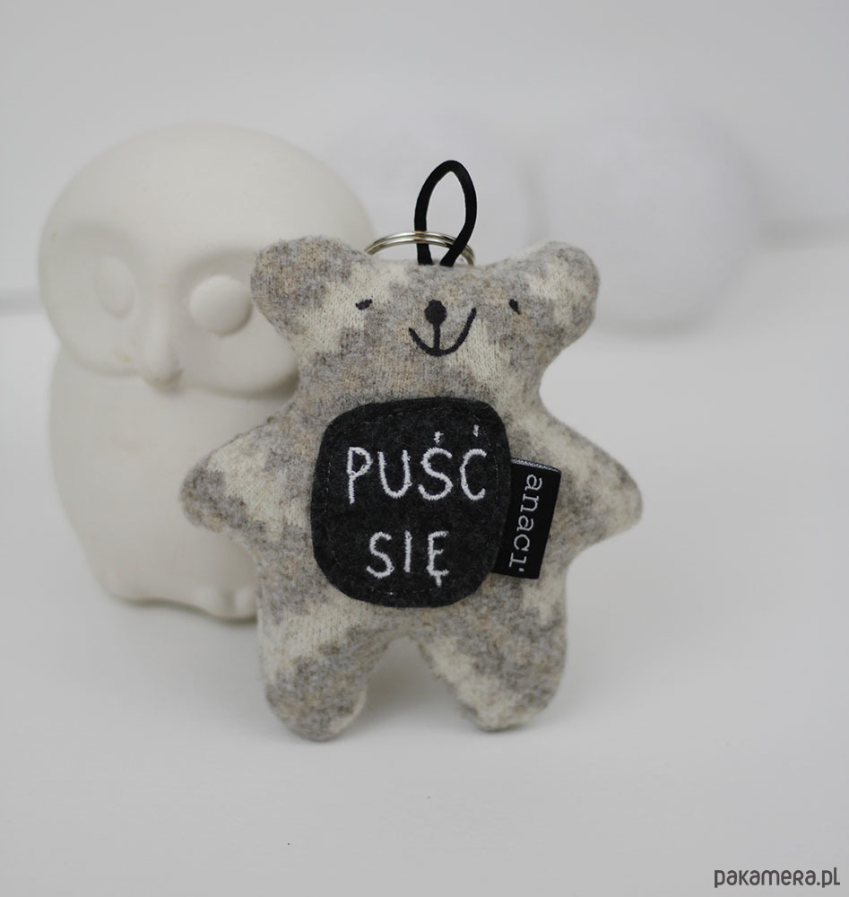 Została uszyta z dzianiny wełnianej, mierzy sobie 11 cm. Puszcza się utartych schematów na prawo i lewo ;)