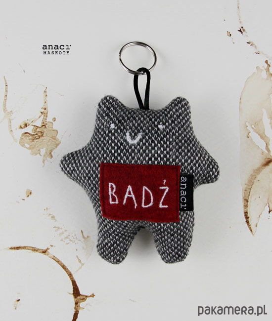 Mierzy sobie mniej więcej 11 cm., zaopatrzony w filcową plakietkę z wyhaftowaną dedykacją.