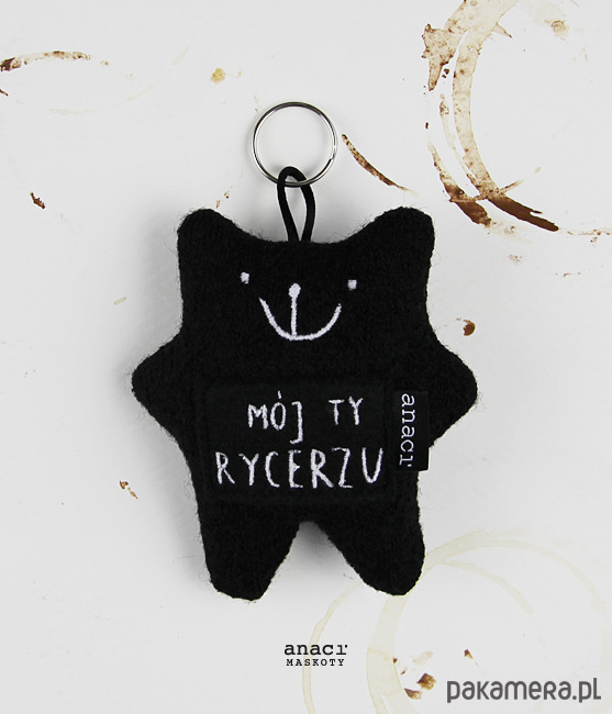 Uszyty z tkaniny wełnianej, zaopatrzony w filcową plakietkę z haftem, mierzy sobie 11,5 cm.
