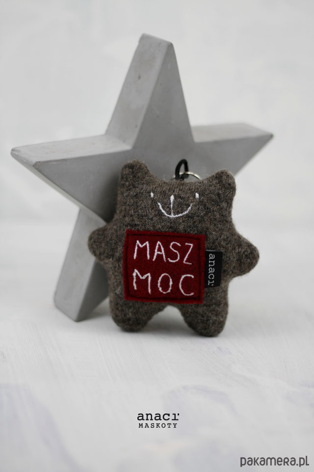 Wykonany z dzianiny wełnianej, zaopatrzony w filcową plakietkę z wyhaftowaną dedykacją. Mierzy sobie 11 cm.