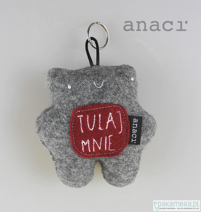 Tulanek Janek został uszyty ręcznie, zaopatrzony w filcowa plakietkę z wyhaftowaną deklaracją. Chętny do tulania, a jakże :)) Mierzy sobie 11,5 cm