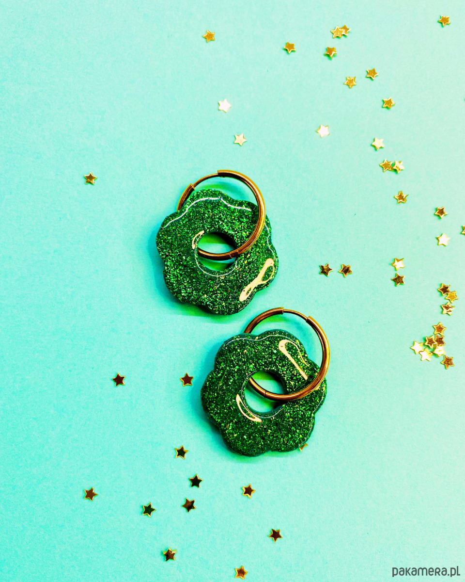 Brokatowe świąteczne kolczyki KWIATY w kolorze zielonym