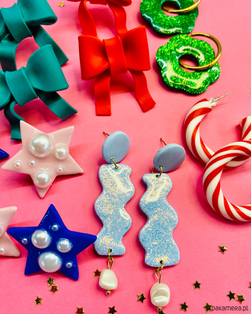 Ręcznie robione, ultra lekkie kolczyki wykonane z gliny polimerowej.