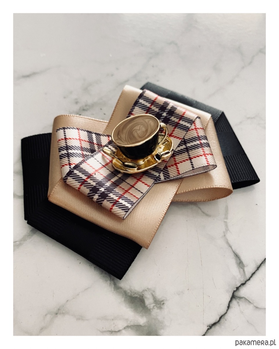 Broszka wykonana z wysokiej jakości taśm i dodatków.