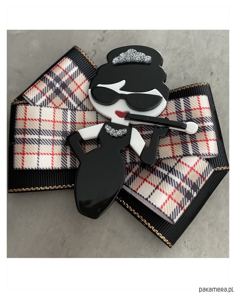 Broszka wykonana z wysokiej jakości taśm i dodatków. Broszka w kolorach czerni i stylowej kraty. Piękna duża dekoracyjna ozdoba na środku. Ogromna postać kobiety na wzór Audrey Hepburn Będzie idealnie pasować zarówno do koszul, bluzek, swetrów, sukienek, żakietów oraz do płaszczy, kurtek, szali i chust. Idealna do każdej stylizacji, zarówno do sportowej jak również do eleganckich stylizacji.