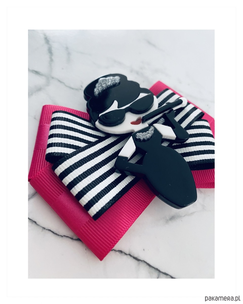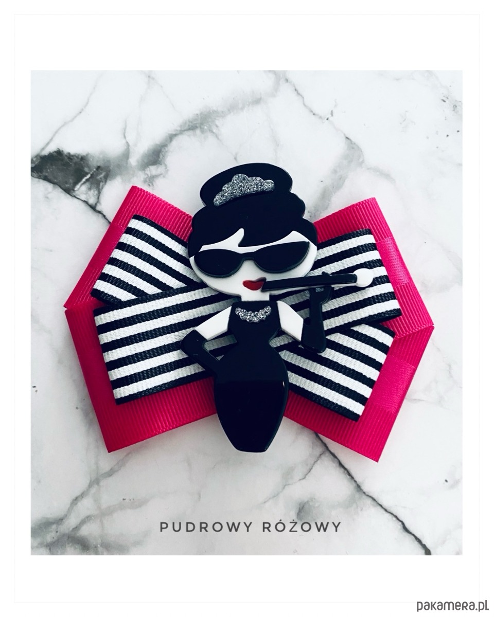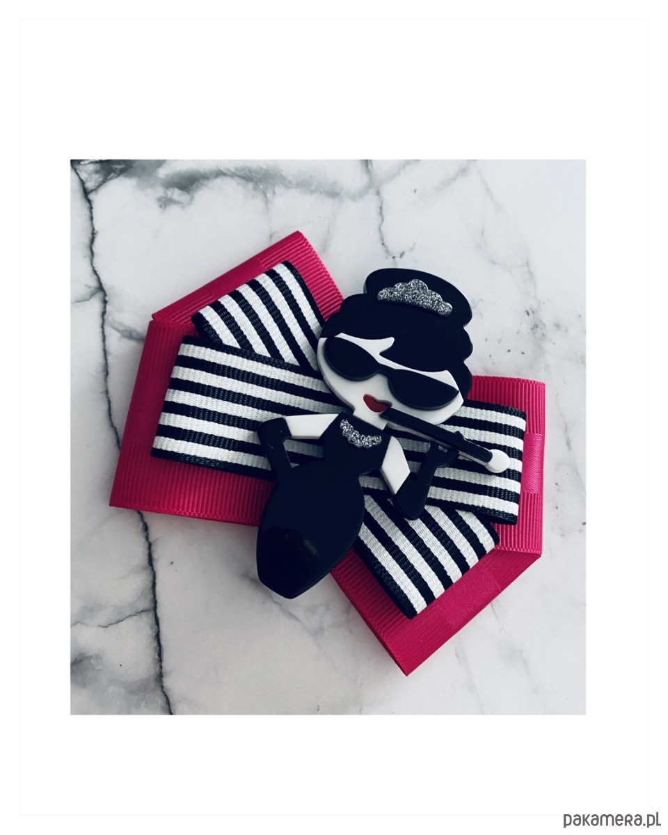 Broszka wykonana z wysokiej jakości taśm i dodatków. Broszka w kolorach fuksji i pasków czarno -białych. Piękna duża dekoracyjna ozdoba na środku. Ogromna postać kobiety na wzór Audrey Hepburn Będzie idealnie pasować zarówno do koszul, bluzek, swetrów, sukienek, żakietów oraz do płaszczy, kurtek, szali i chust. Idealna do każdej stylizacji, zarówno do sportowej jak również do eleganckich stylizacji.