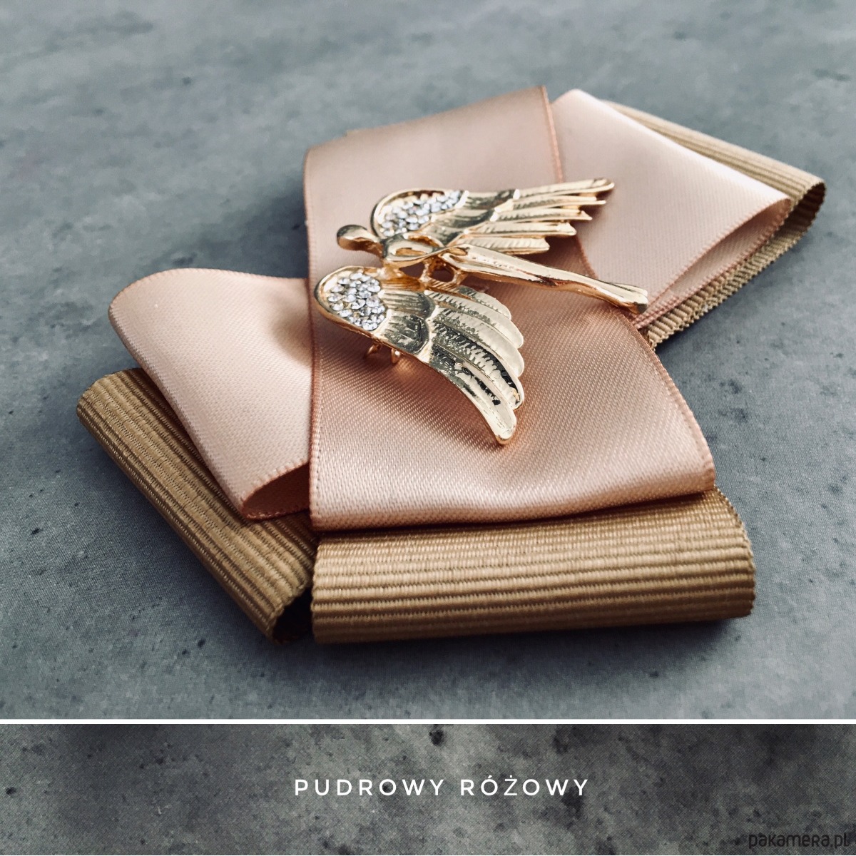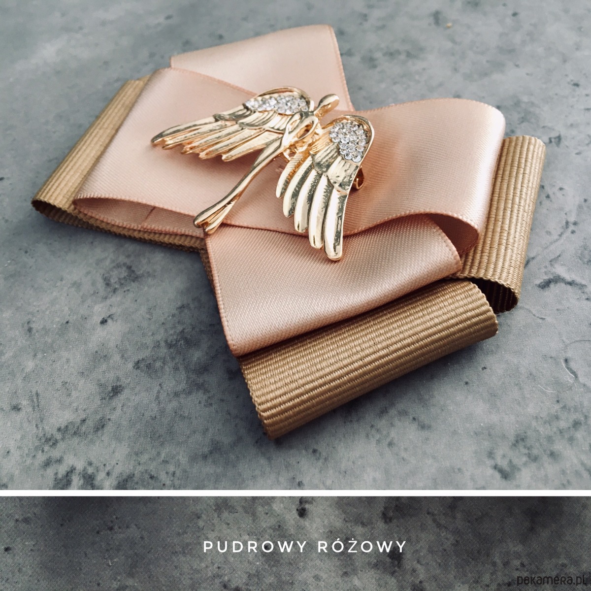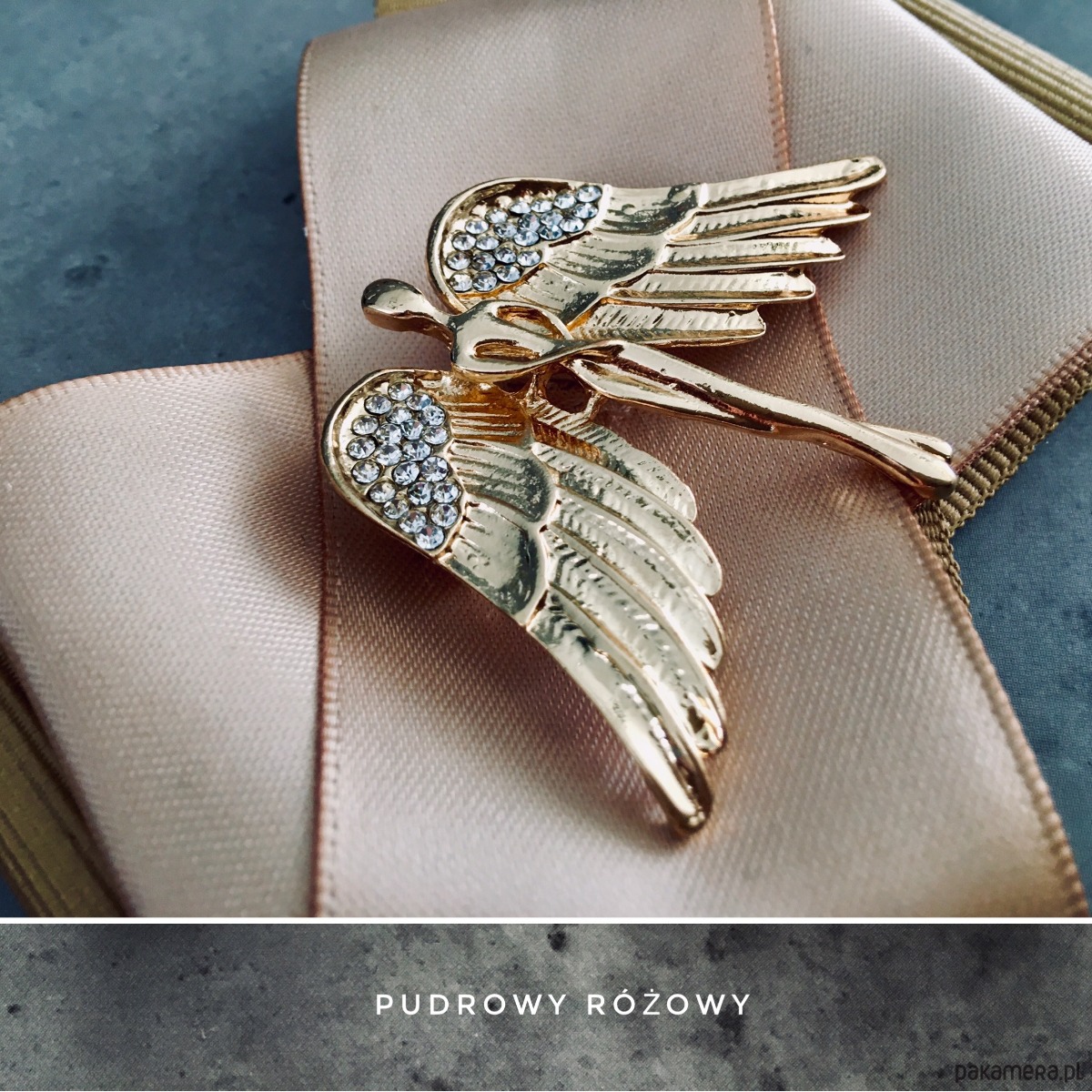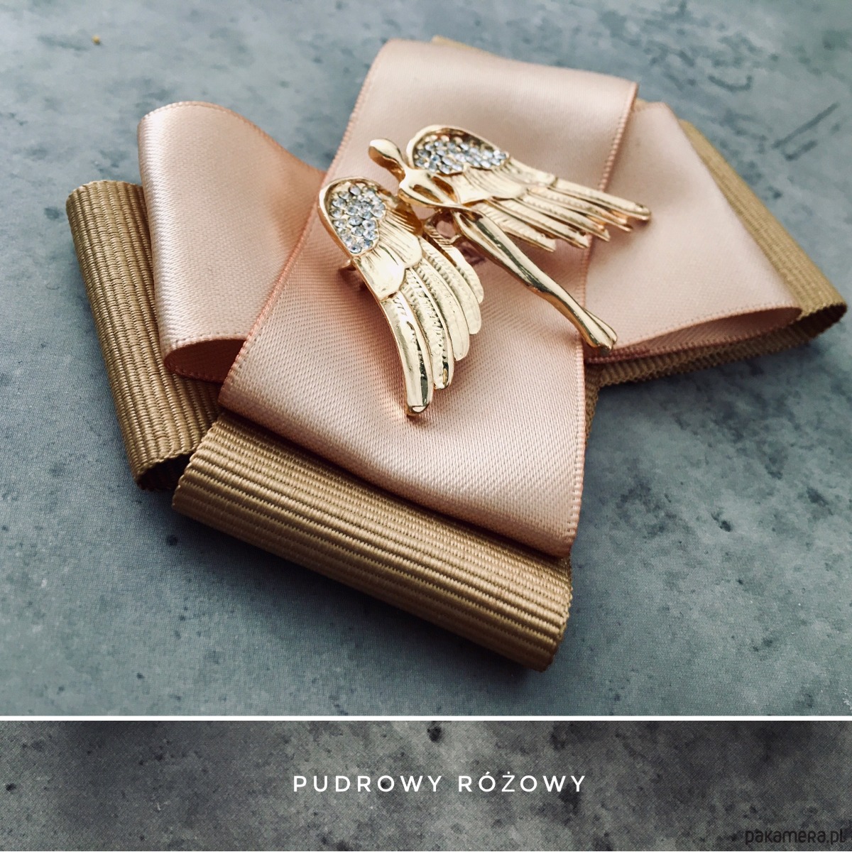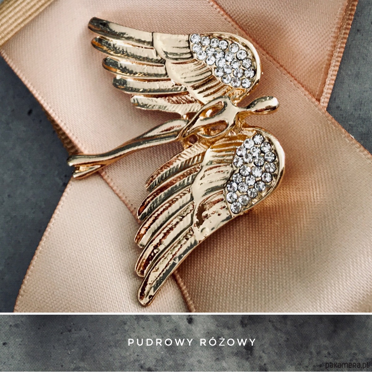 Broszka wykonana z wysokiej jakości taśm i dodatków. Brosza w kolorach Beżu. Na środku naszyta sliczna ozdoba biżuteryjna Anioł w kolorze złotym z kryształkami. Będzie idealnie pasować zarówno do koszul, bluzek, swetrów, sukienek, żakietów oraz do płaszczy, kurtek, szali i chust. Idealna do każdej stylizacji, zarówno do sportowej jak również do eleganckich stylizacji.