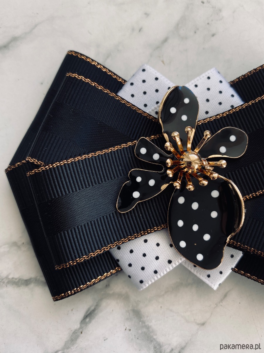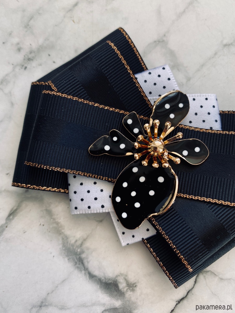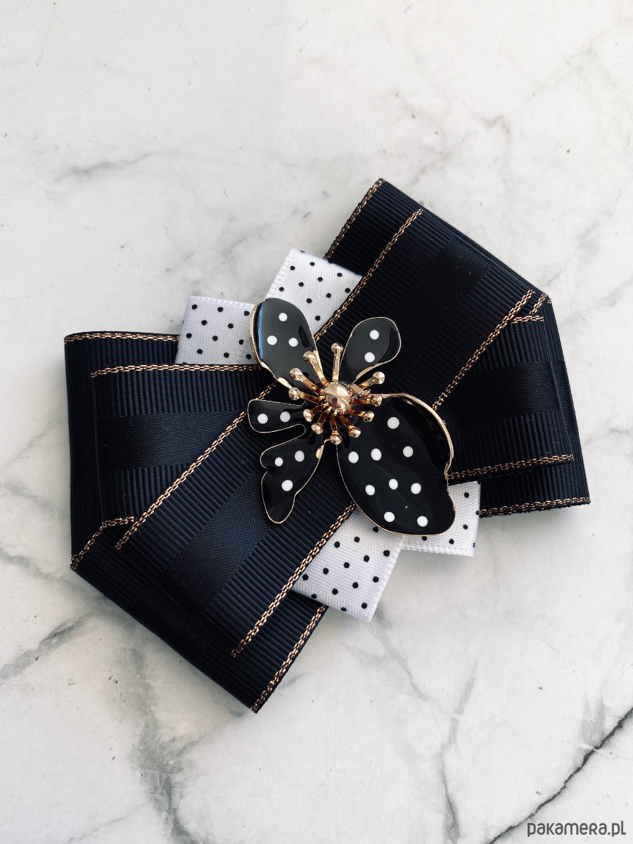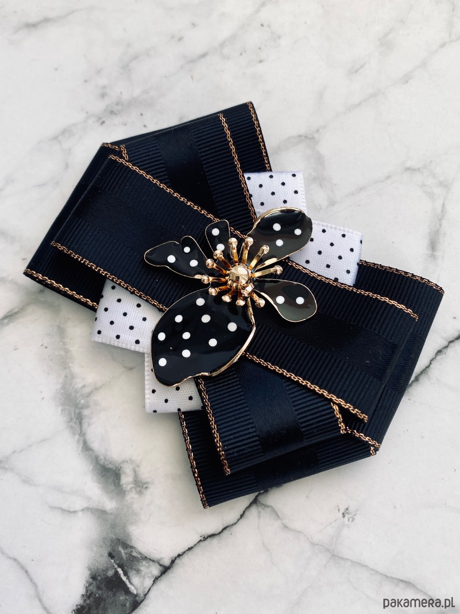 Brosza Black & White z efektowym kwiatem w kropeczki New