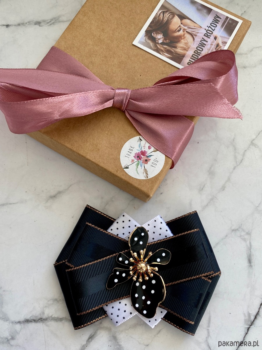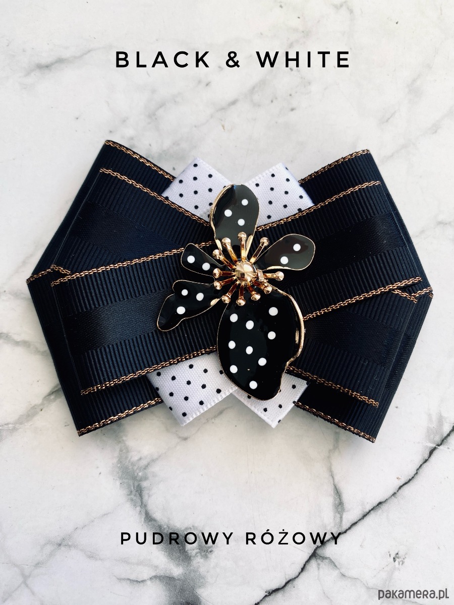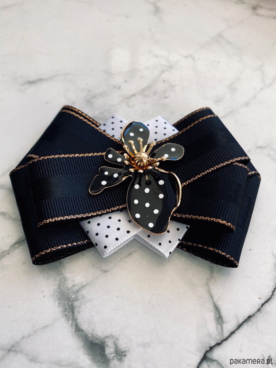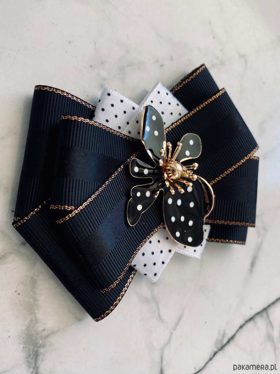 Brosza Black & White z efektowym kwiatem w kropeczki New