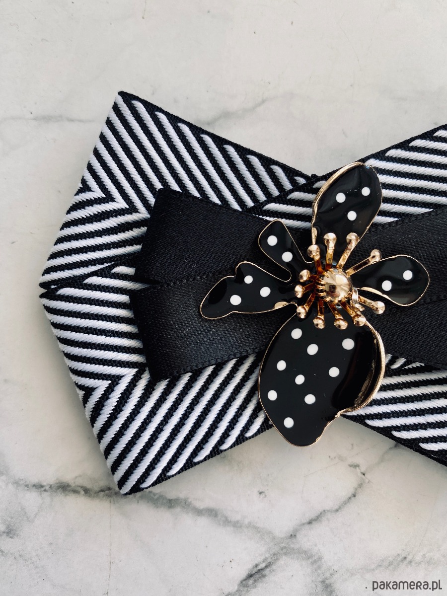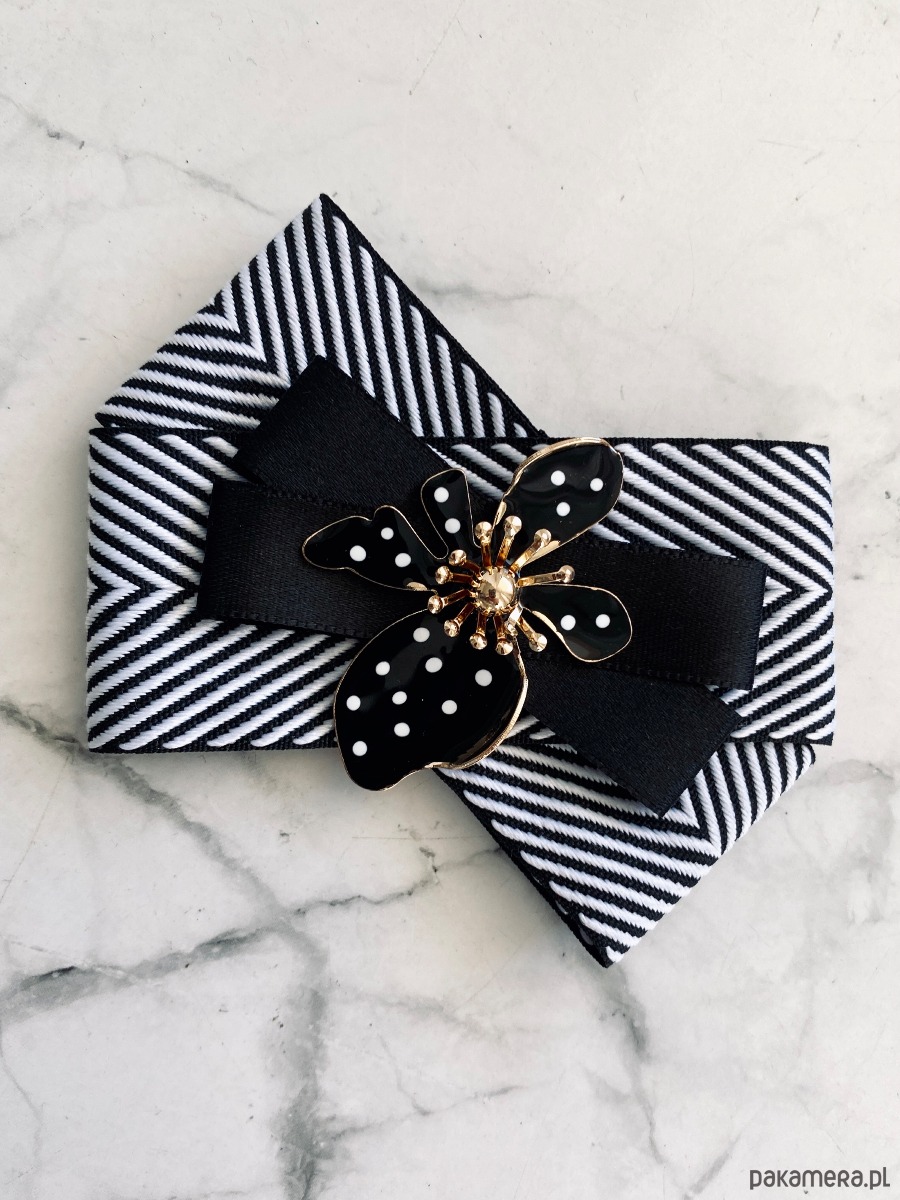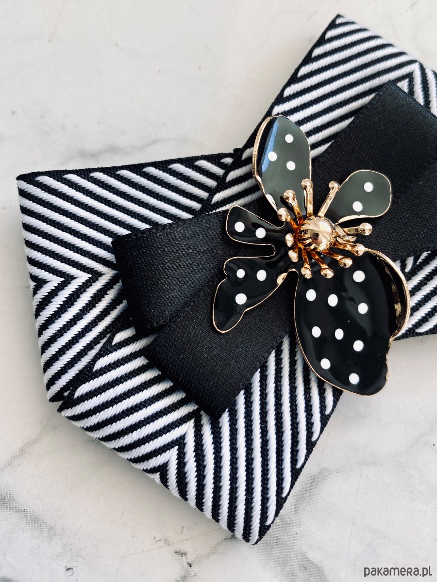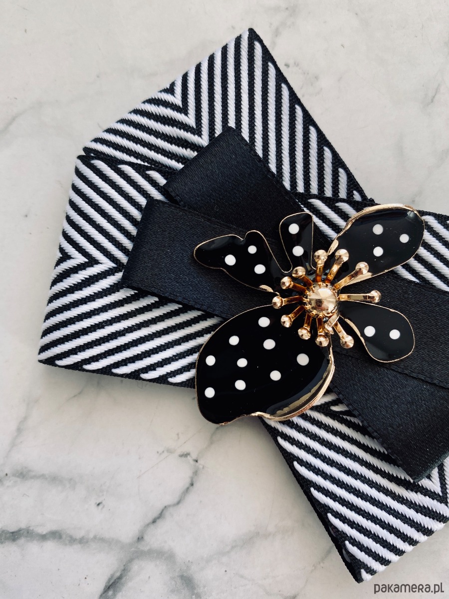 Brosza Black & White z efektowym kwiatem w kropeczki New
