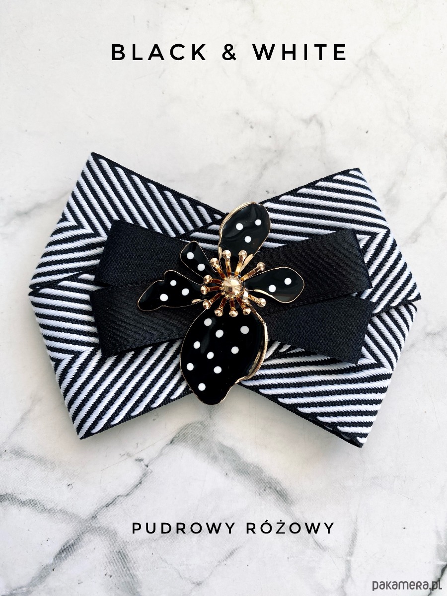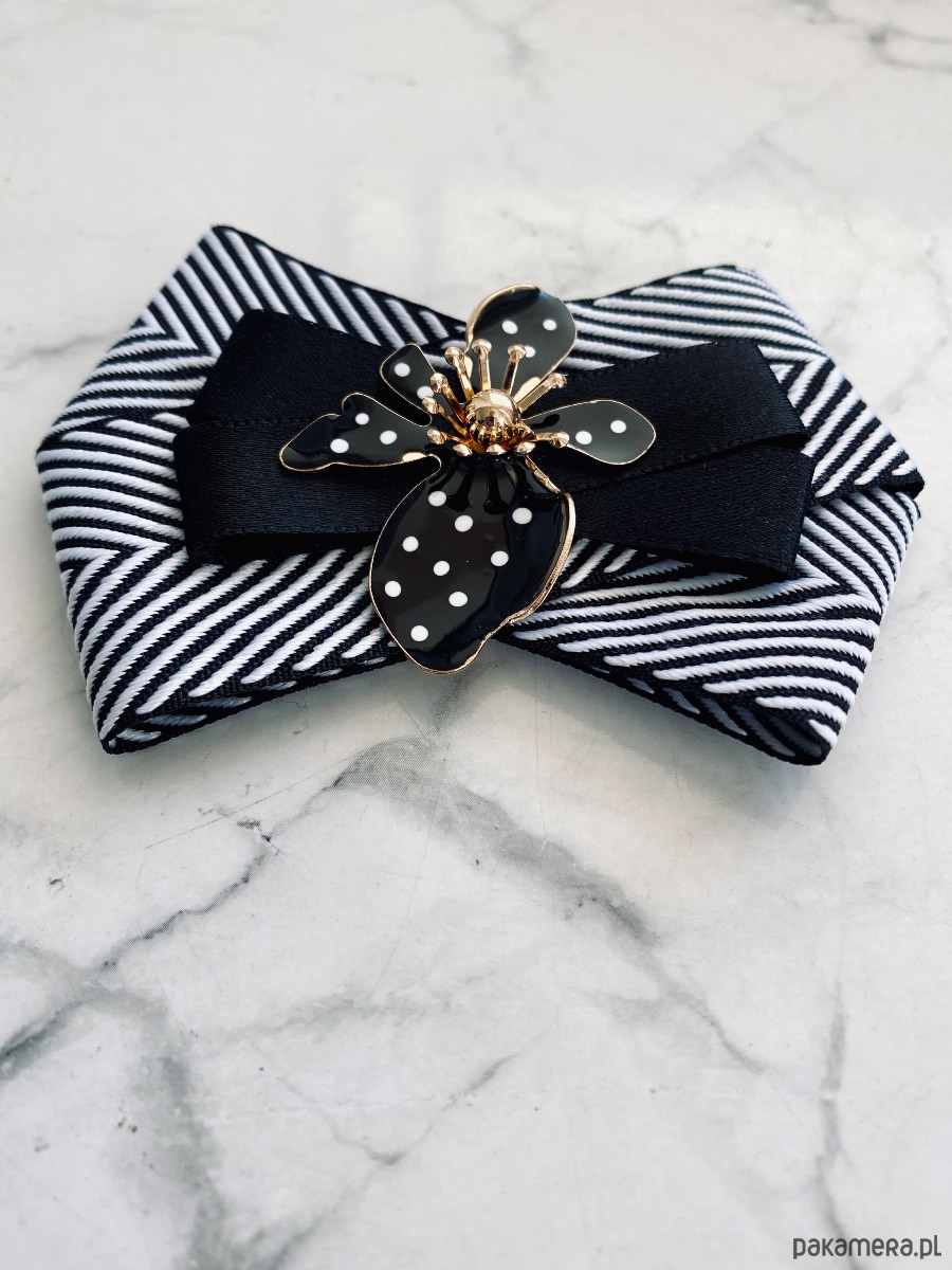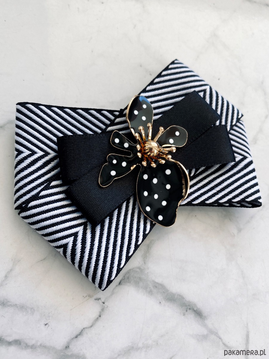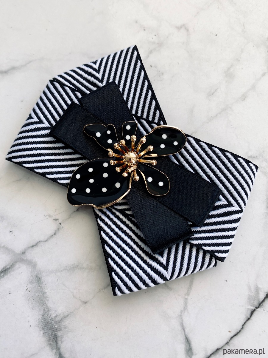 Brosza Black & White z efektowym kwiatem w kropeczki New