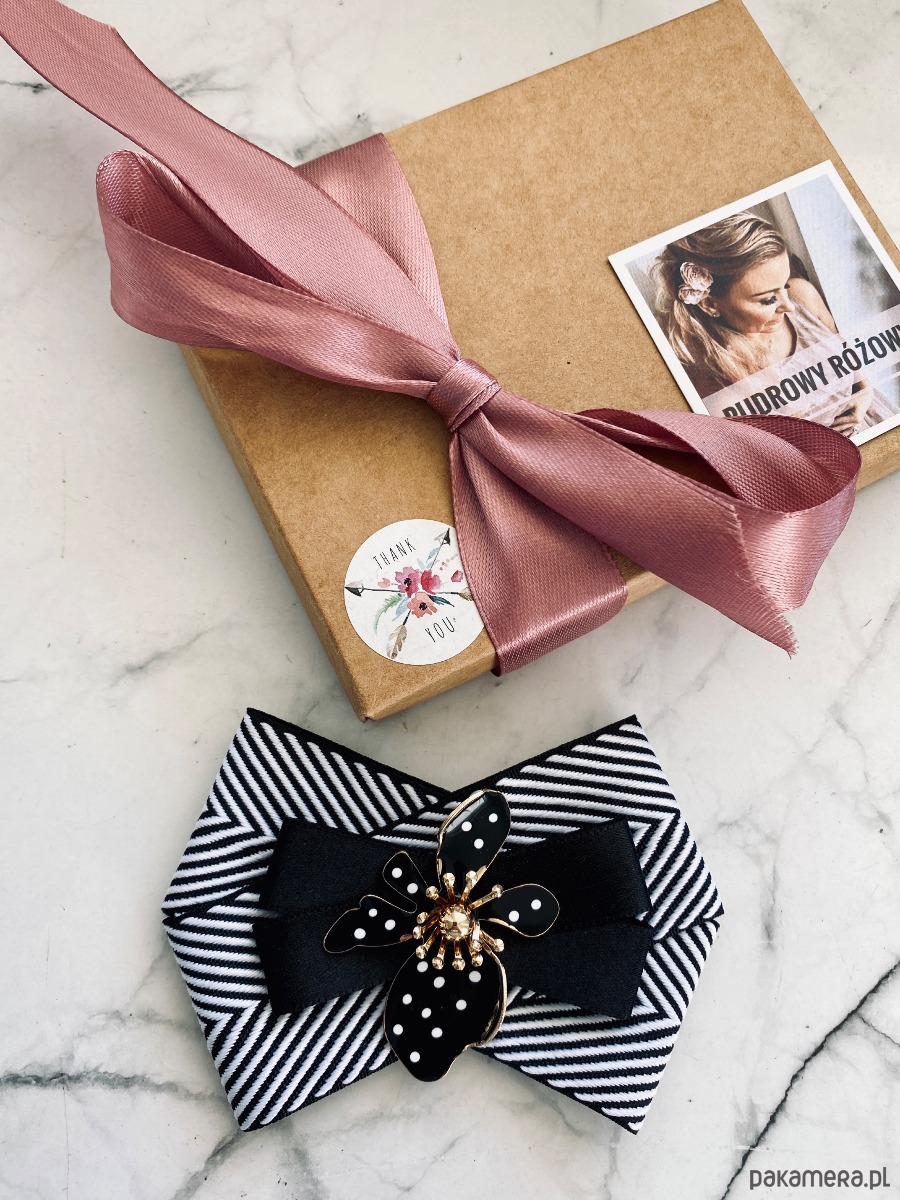 Broszka wykonana z wysokiej jakości taśm i dodatków.